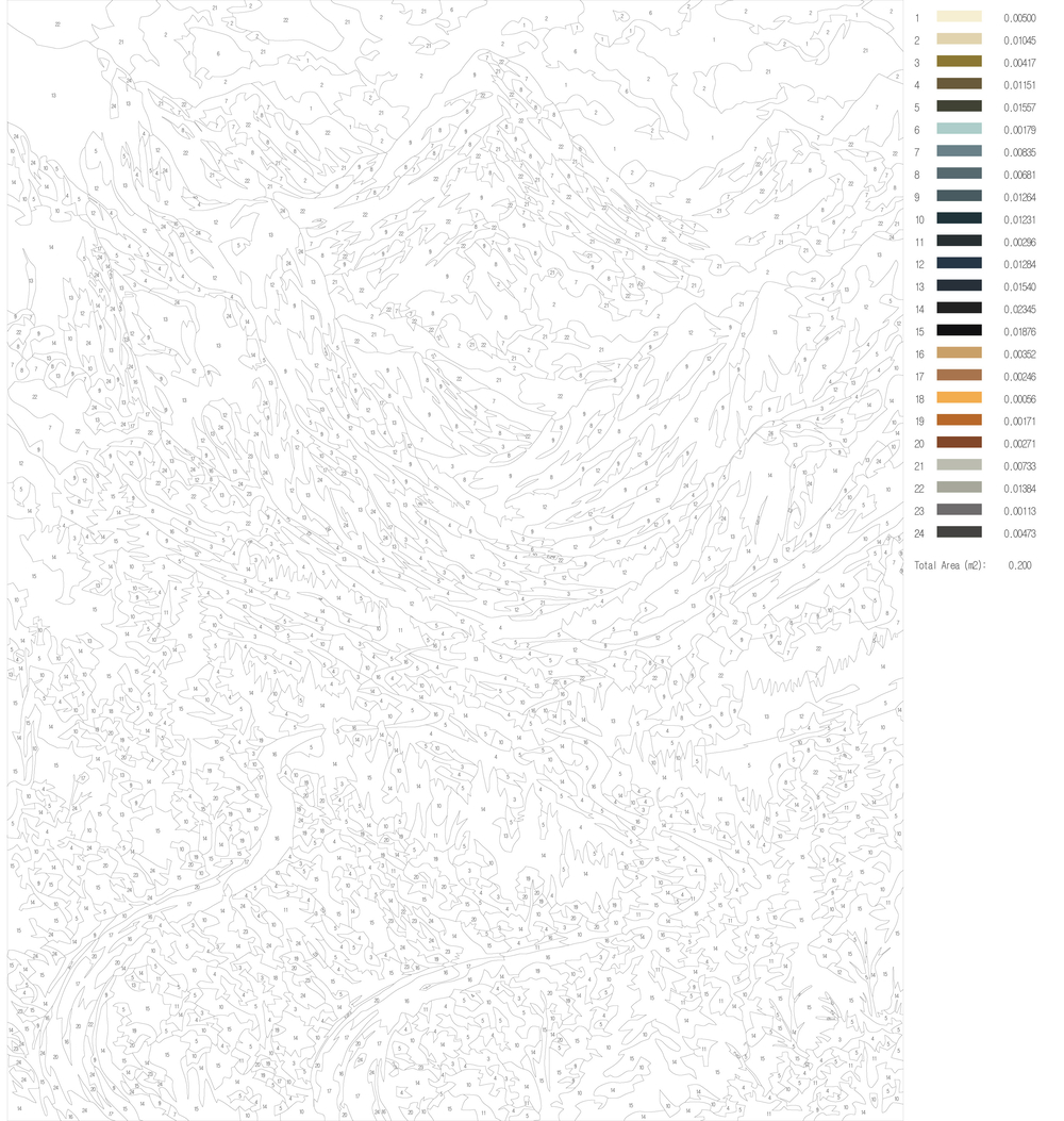 В набор входит холст с черно-белой цифровой разметкой. Каждой краске в наборе соответствует свой номер. Необходимо просто аккуратно нанести краски на участки с соответствующими цифрами. И так постепенно будет проявляться будущий шедевр.
