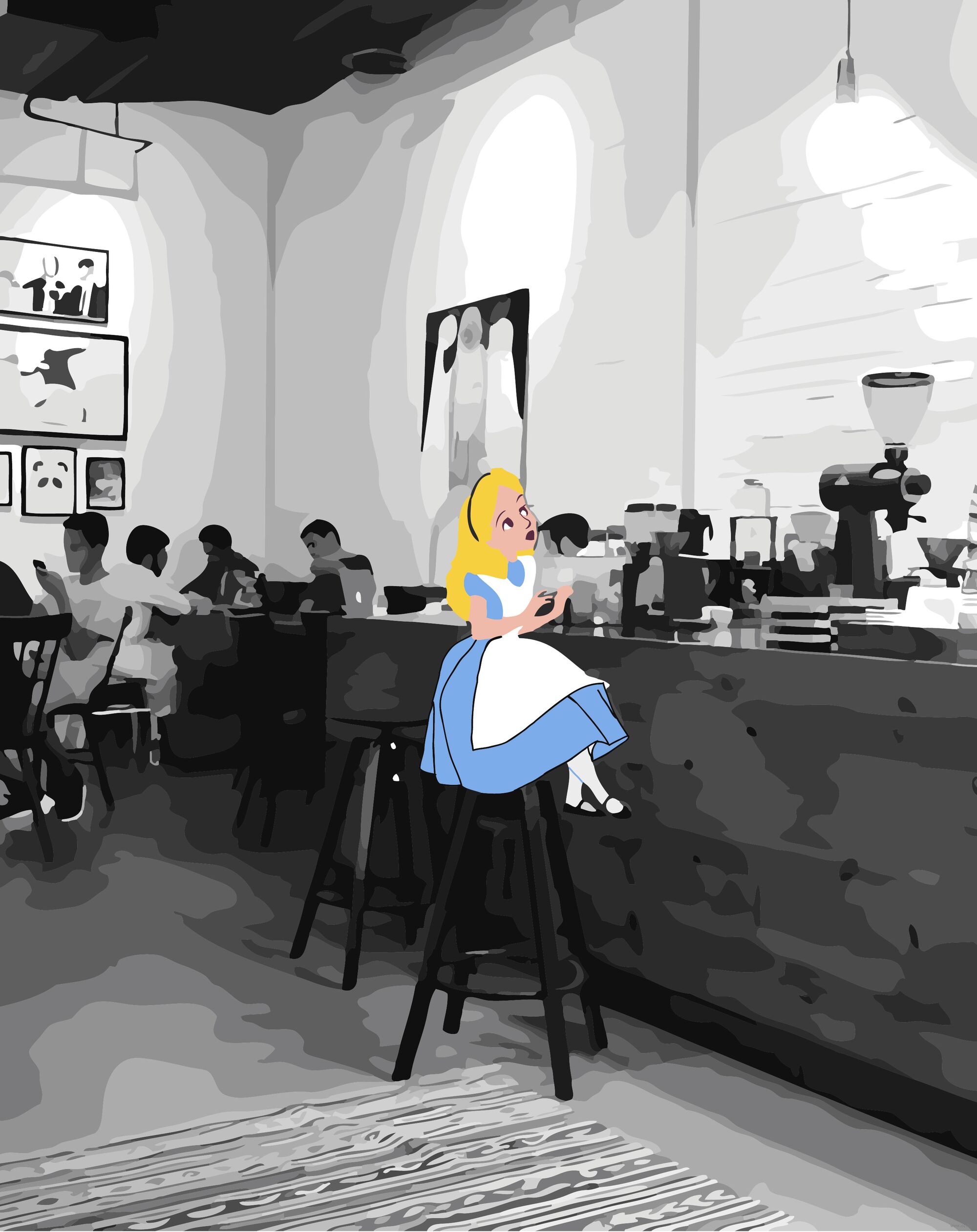 Картина по номерам "Алиса и фильтр-кофе" (400х500 мм)