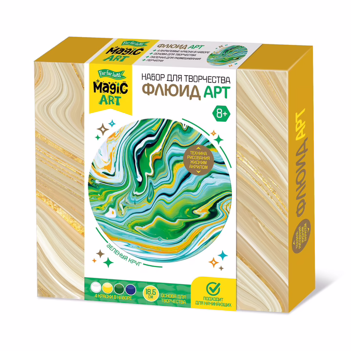 Создайте абстрактную картину своими руками с набором для творчества "Зелёный круг" используя технику рисования жидким акрилом. Ведь для этого вам необязательно иметь навыки рисования и опыт работы с красками.