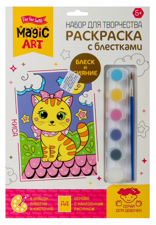 Раскраска с блестками "Киса" – это набор для творчества, с помощью которого можно создать симпатичную открытку и подарить ее друзьям или близким.