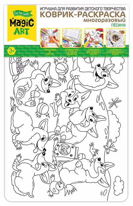 Коврик-раскраска "Пёсики" – это многоразовая и многофункциональная раскраска для детей с изображением милых котят.