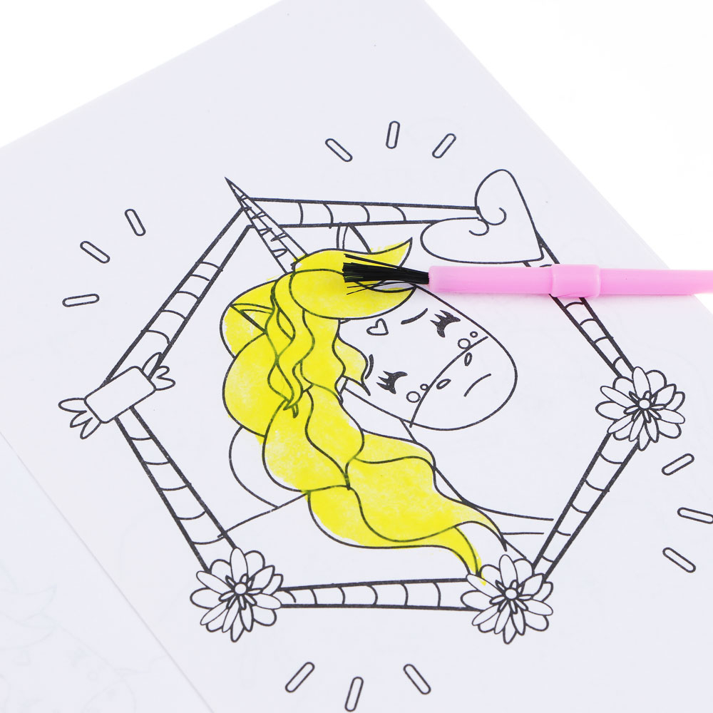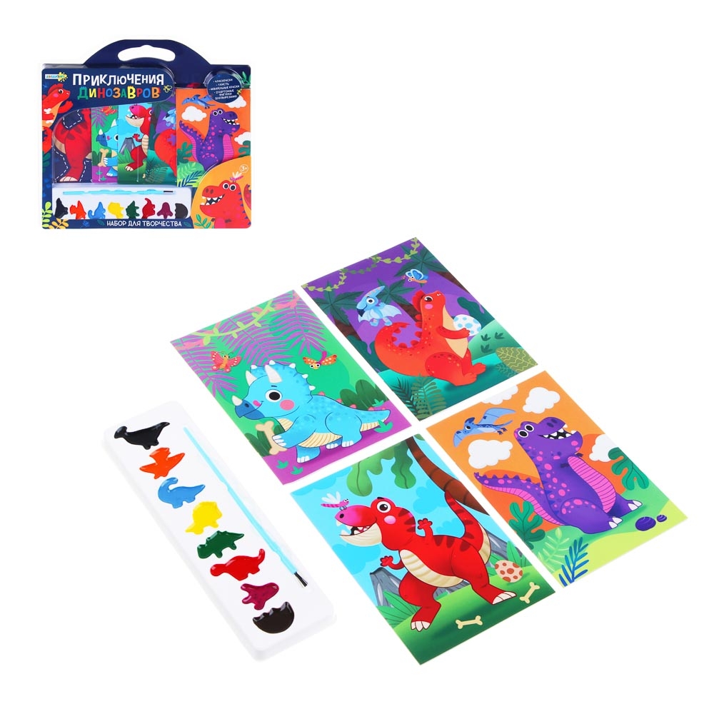 2 картонные фигурки для вырезания, 4 раскраски, кисть и акварельные краски (8 цветов)