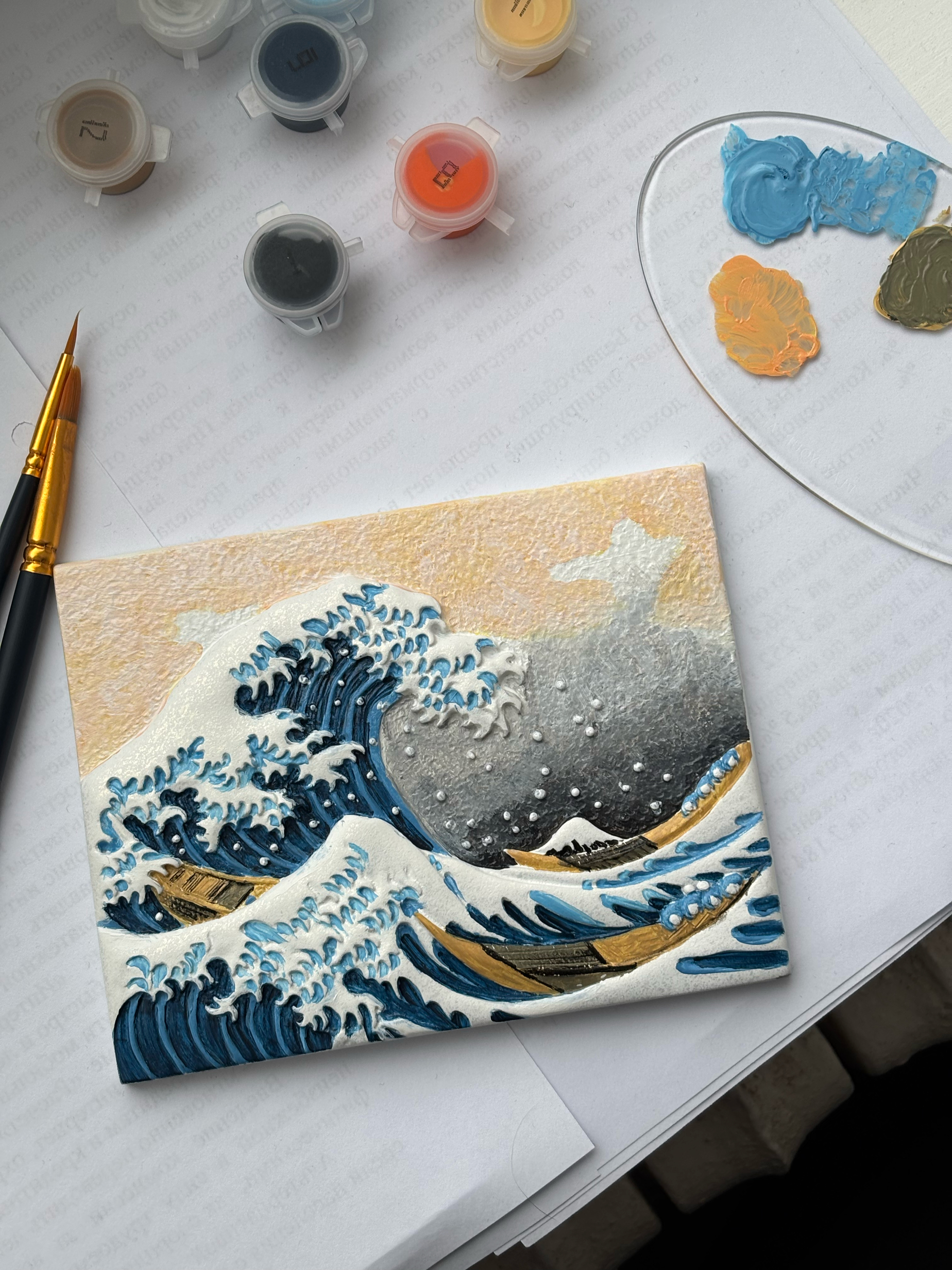 Рельефная картина "Кацусика Хокусай. Большая волна в Канагаве"