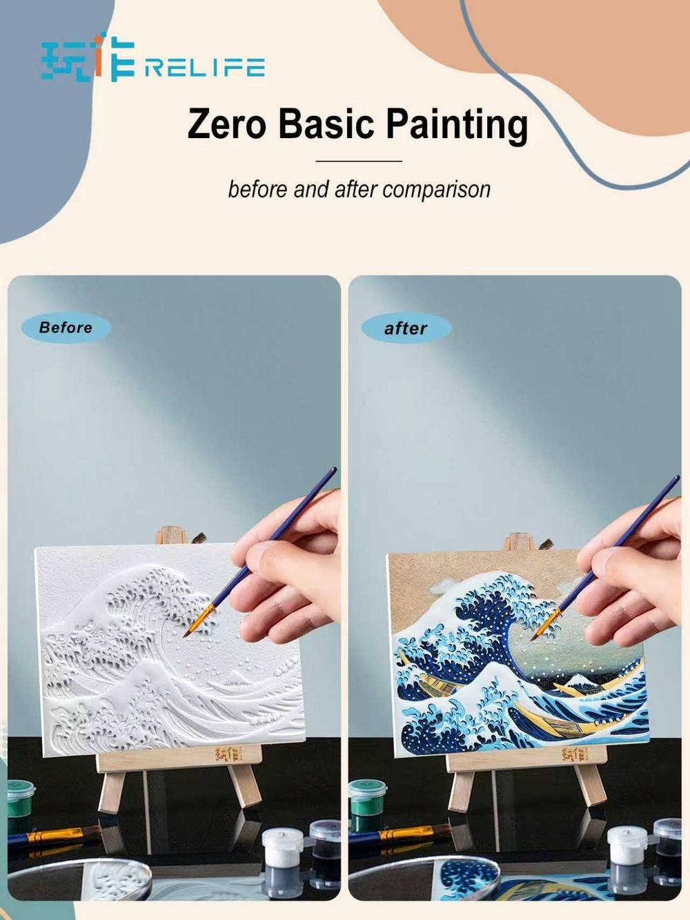Гипсовая основа картины позволяет легко и красиво раскрашивать, придавая работам уникальный рельеф и текстуру.