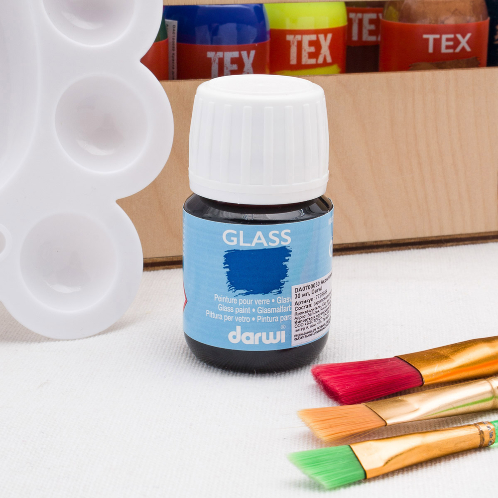 Darwi "Glass" – это очень блестящая краска на спиртовой основе, готовая к применению. Благодаря своему составу она позволяет декорировать как прозрачные гладкие поверхности: стекло и пластмассу, так и другие непрозрачные: дерево, гипс, пенопласт.