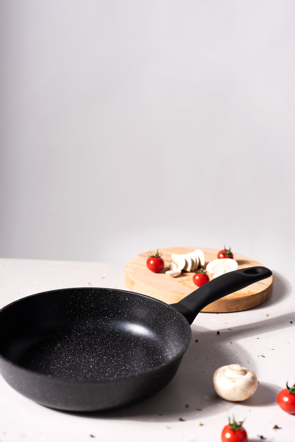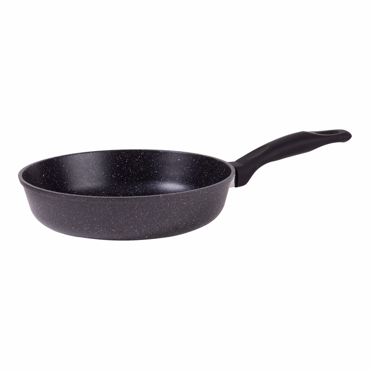 Сковорода изготовлена из высококачественного литого алюминия, что обеспечивает равномерное распределение тепла и предотвращает пригорание пищи.