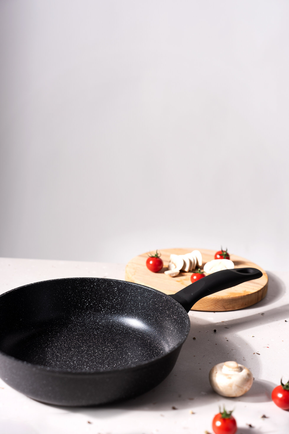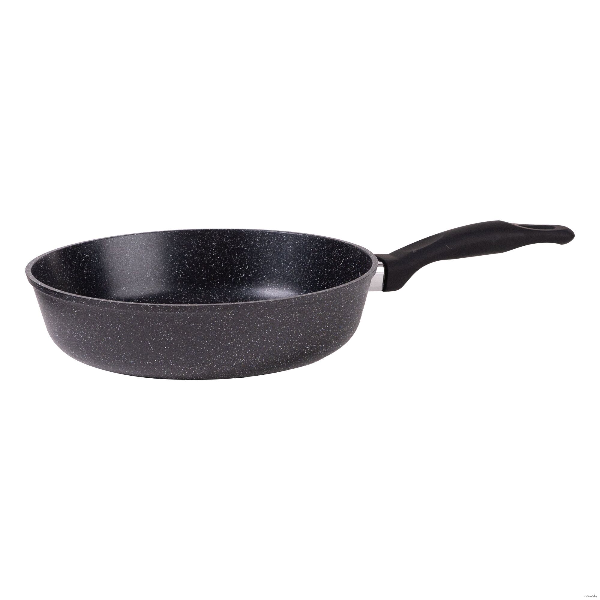 Сковорода изготовлена из высококачественного литого алюминия, что обеспечивает равномерное распределение тепла и предотвращает пригорание пищи.
