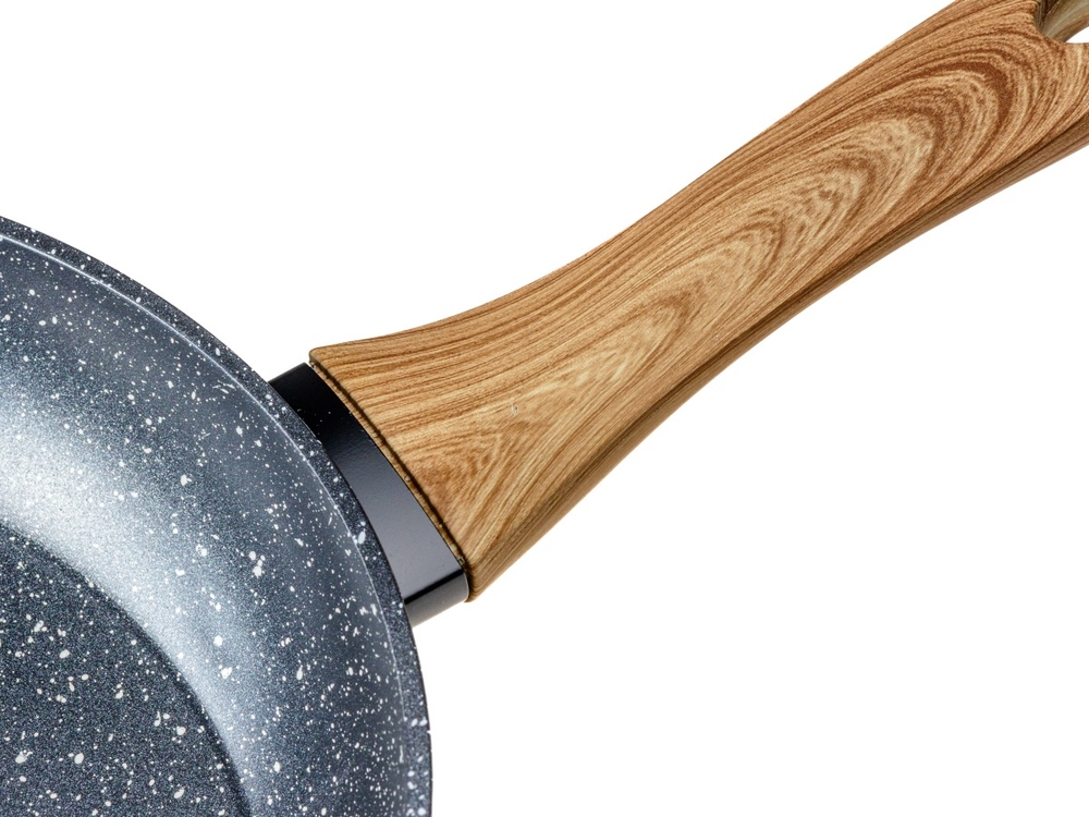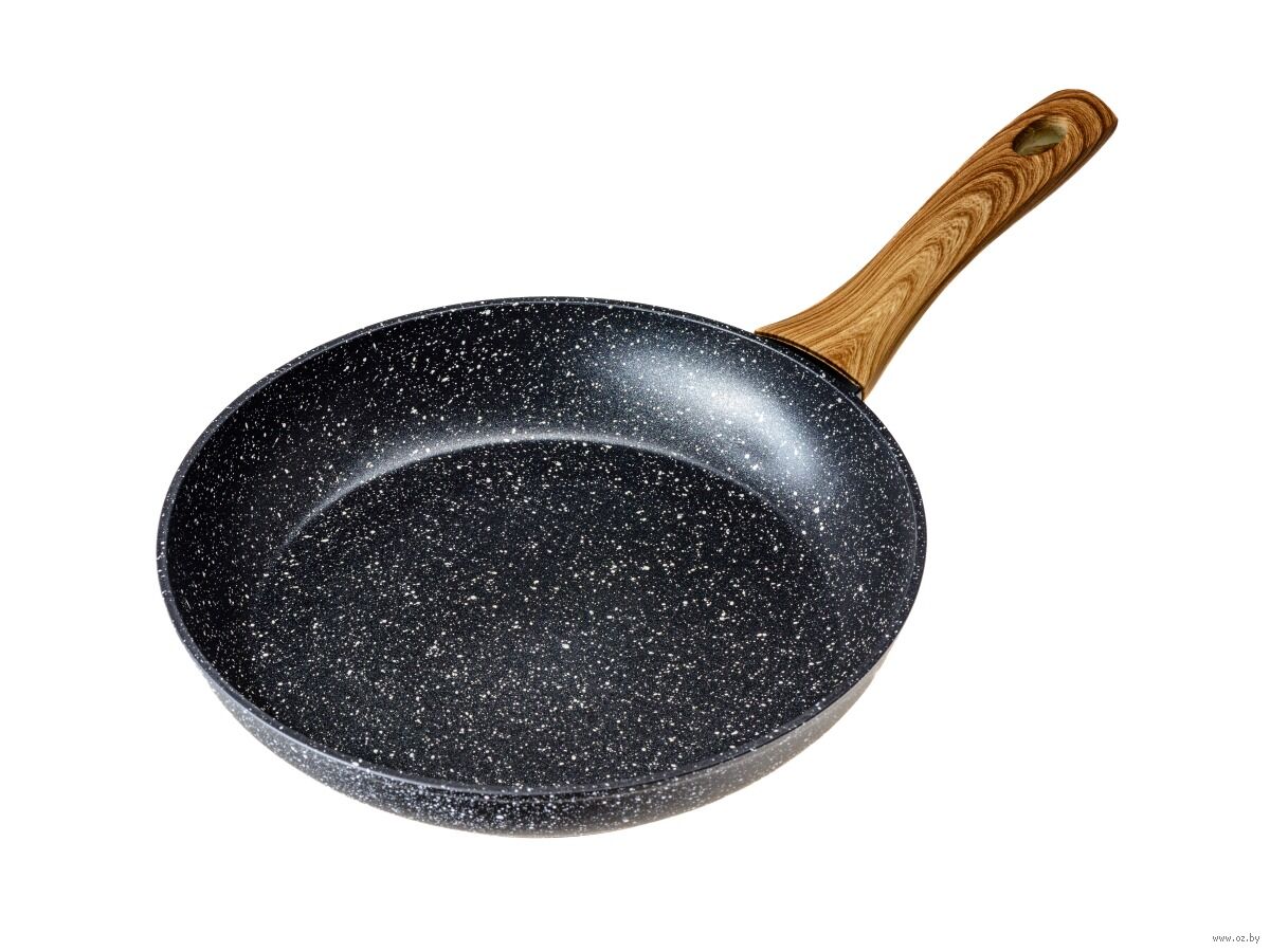 Сковорода алюминиевая с антипригарным мраморным покрытием. Используется в процессе приготовления пищи. Перед первым использованием вымыть моющим средством для посуды.