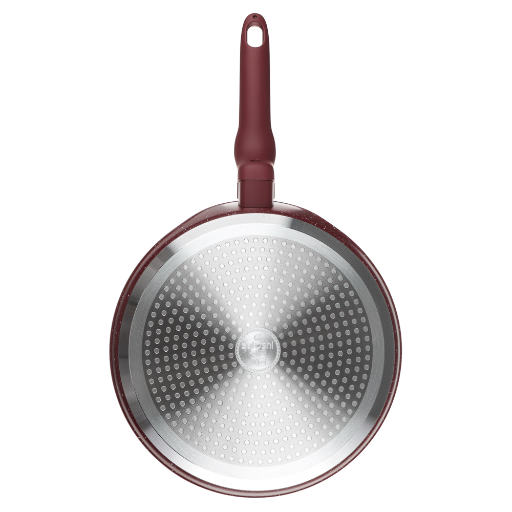 Низкий бортик облегчает переворачивание блинов, а литой алюминиевый корпус обеспечивает быстрый нагрев, значительно ускоряя процесс выпекания блинов. Усиленное антипригарное покрытие выдерживает длительный нагрев, не истирается и не теряет своих свойств. Устойчиво к царапинам при аккуратной эксплуатации с использованием деревянных, силиконовых или пластиковых лопаток.