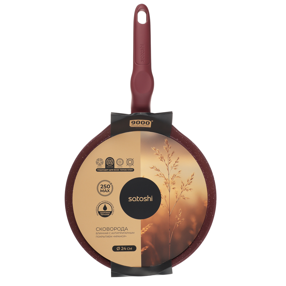 Сковорода литая блинная "Мари", диаметр 24 см, с антипригарным покрытием мрамор создана специально для выпечки тонких и ажурных блинчиков.