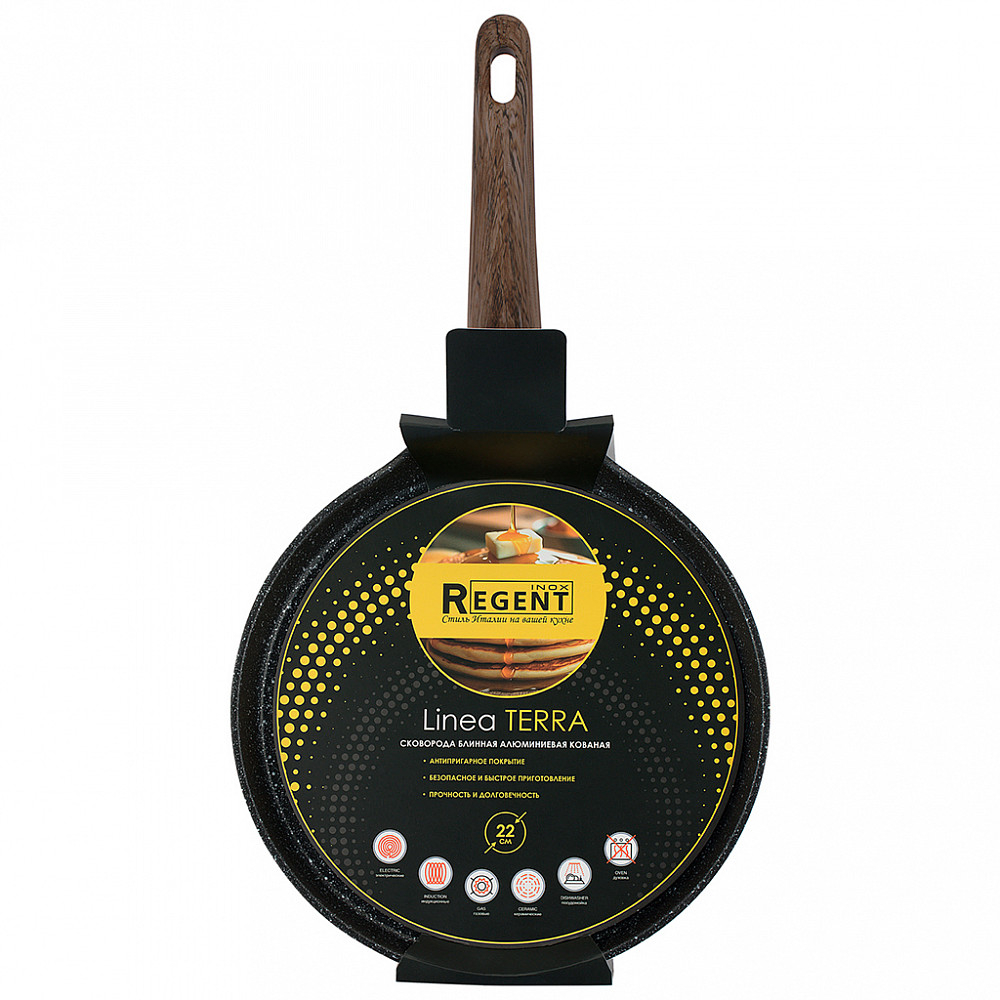 Сковорода блинная Regent inox 22 см с антипригарным покрытием. Блинная сковорода диаметром предназначена для приготовления тонких блинов, оладий и других изделий из жидкого теста.