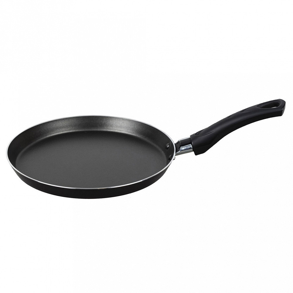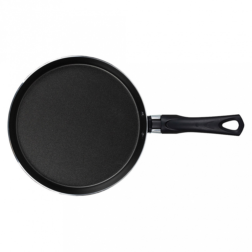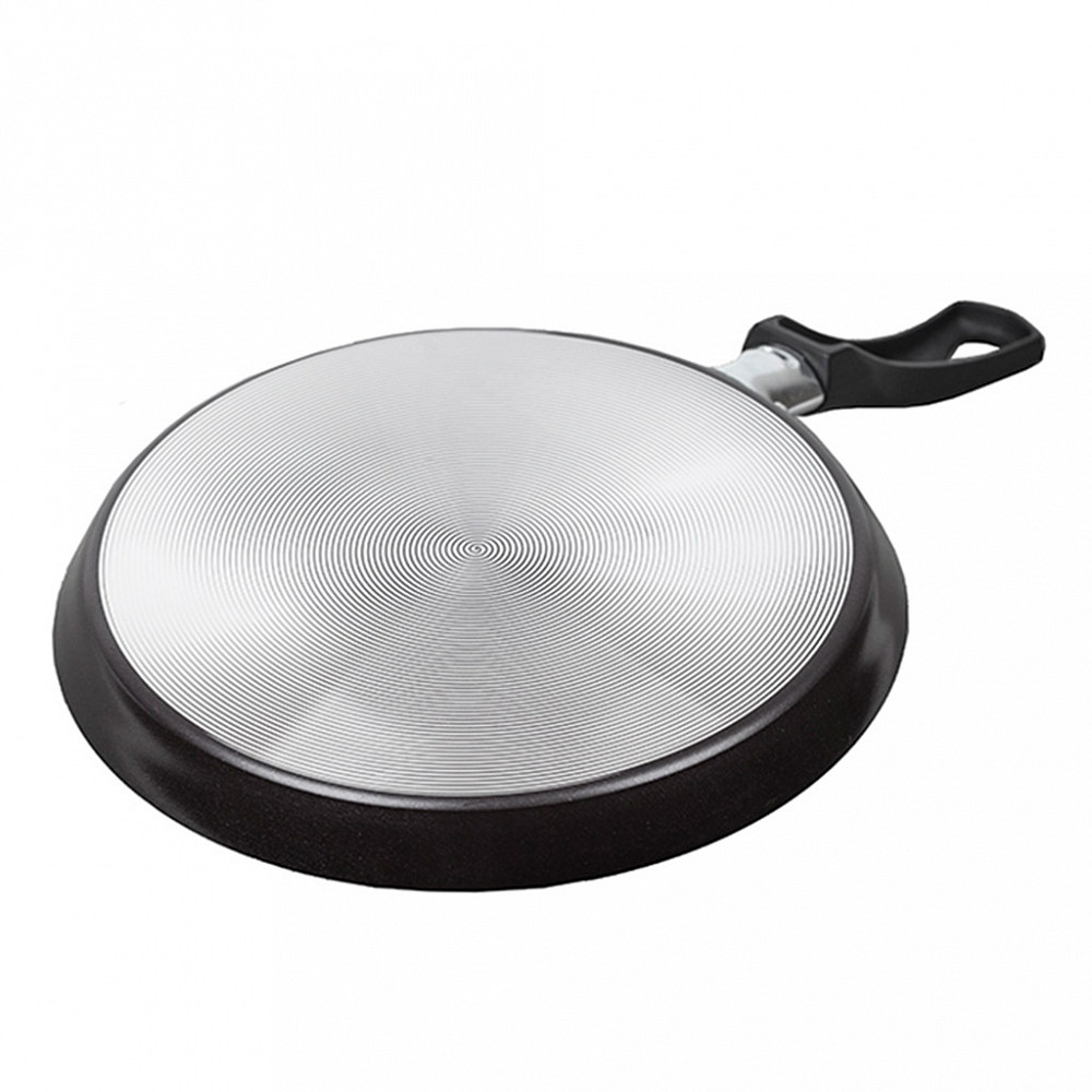 Прочный алюминиевый корпус из штампованного металла быстро нагревается и равномерно обжаривает блинчики без пригорания и прилипания. Низкие бортики максимально облегчают процесс переворачивания: тесто получится ровным и аккуратным.
