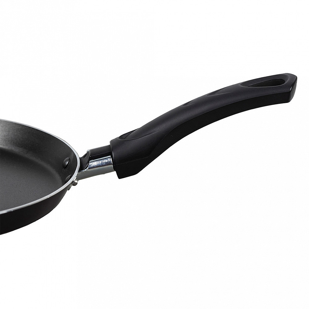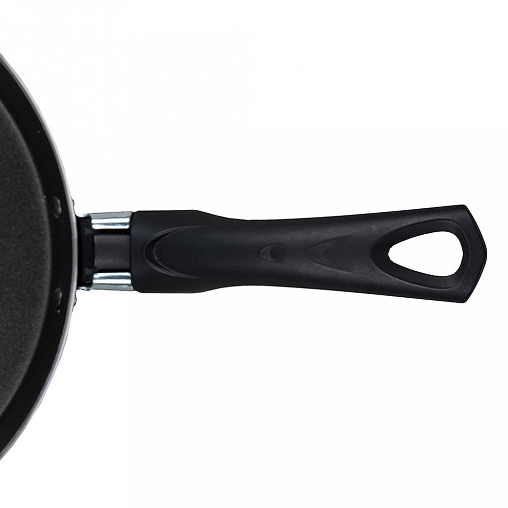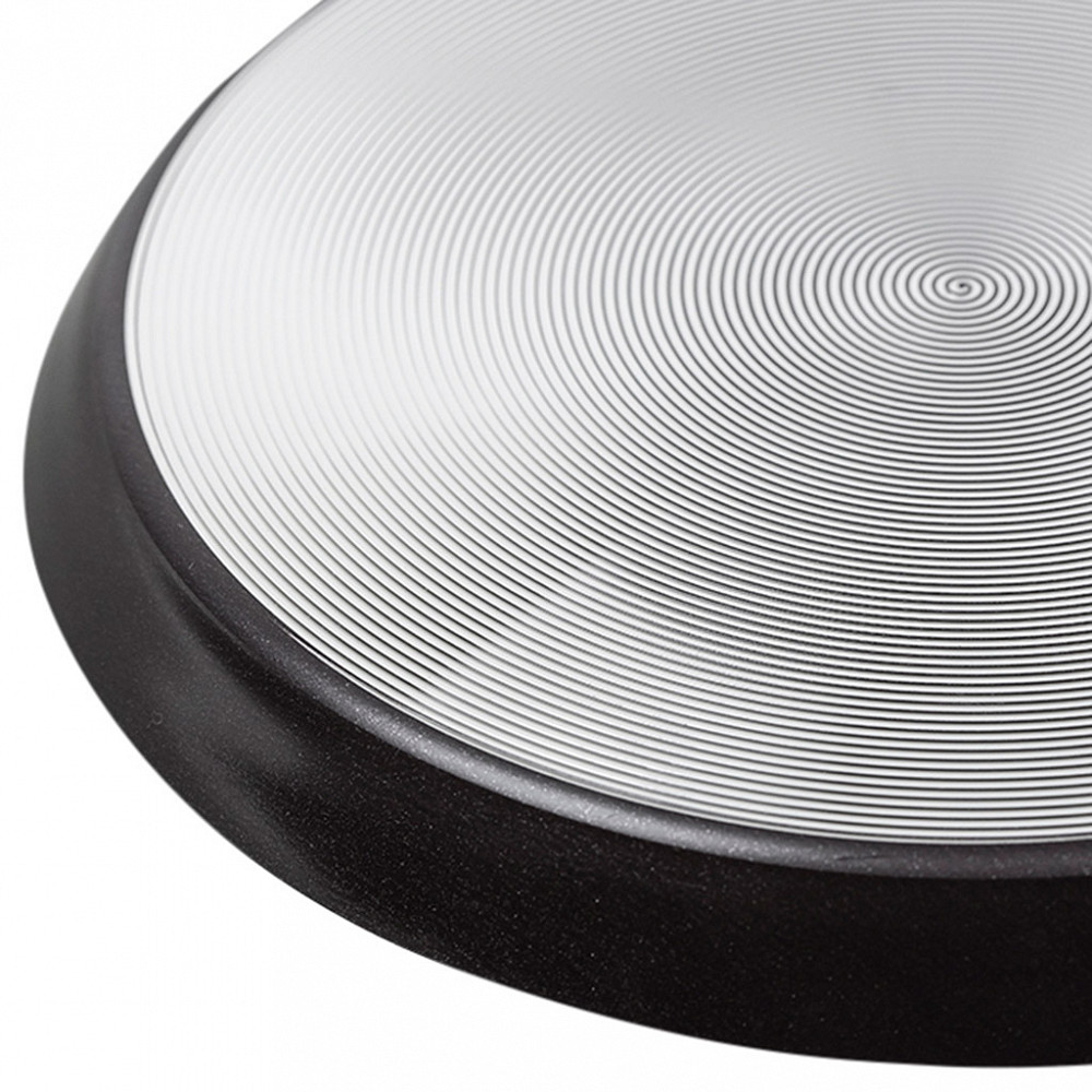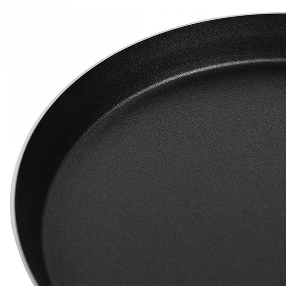 Прочный алюминиевый корпус из штампованного металла быстро нагревается и равномерно обжаривает блинчики без пригорания и прилипания. Низкие бортики максимально облегчают процесс переворачивания: тесто получится ровным и аккуратным.