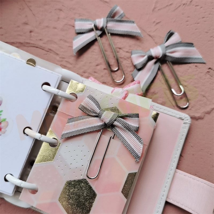 Изящная скрепка в виде бантика поможет красиво закрепить документы, письма или открытки. Добавит нотку элегантности и порядка на ваш рабочий стол или в творческий проект.