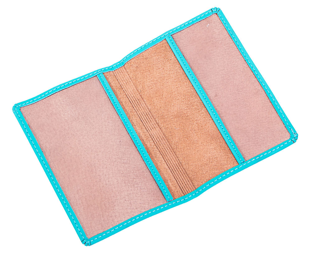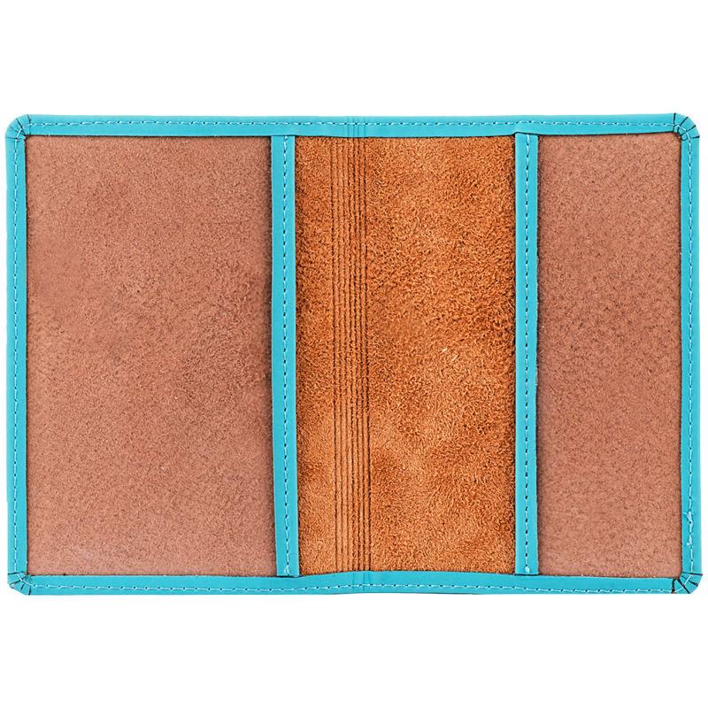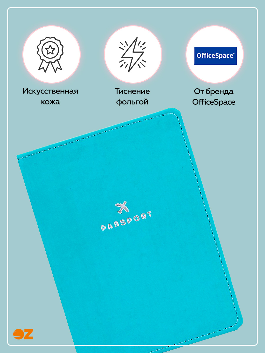 Обложка для паспорта OfficeSpace "Journey" изготовлена из современной искусственной кожи бирюзового цвета. Лицевая сторона оформлена тиснением фольгой.