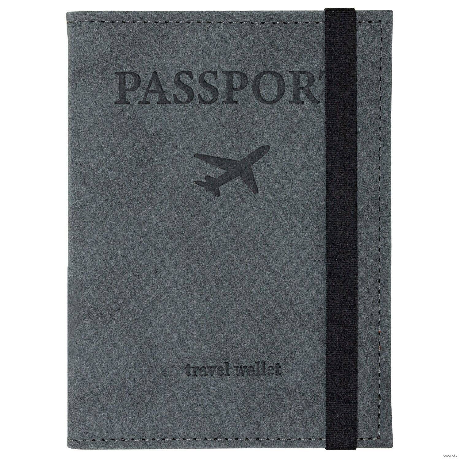 Модель выполнена из экокожи серого цвета c приятной на ощупь soft touch-поверхностью и украшена тиснением в виде надписи "Passport", "travel wallet" и силуэта самолета.