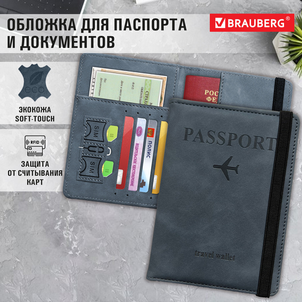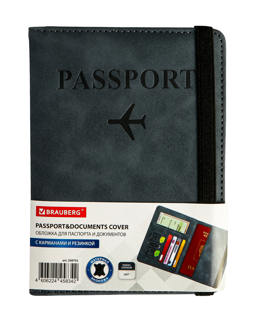 Обложка для паспорта и документов "Brauberg" (тёмно-голубой)
