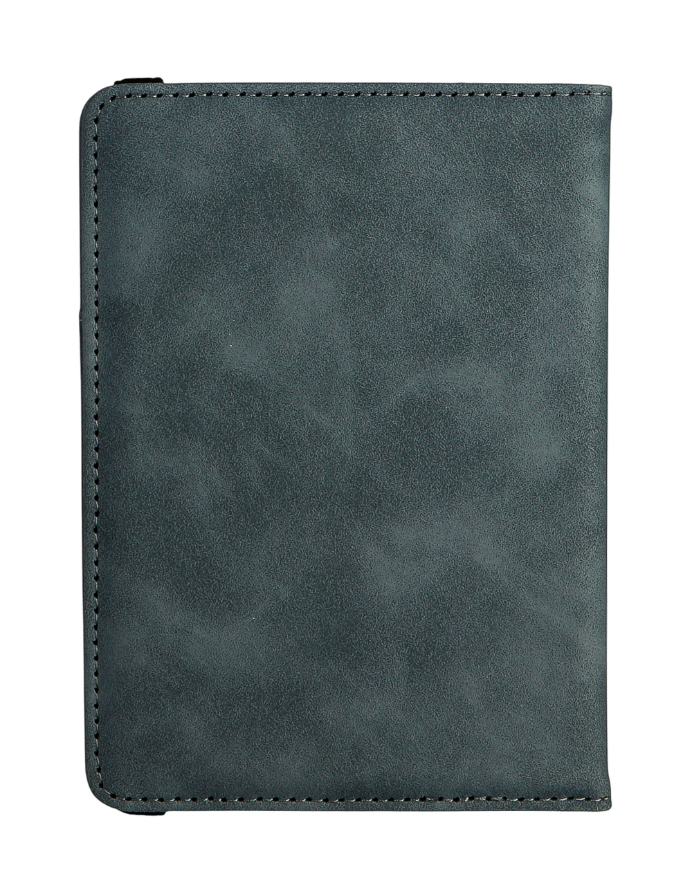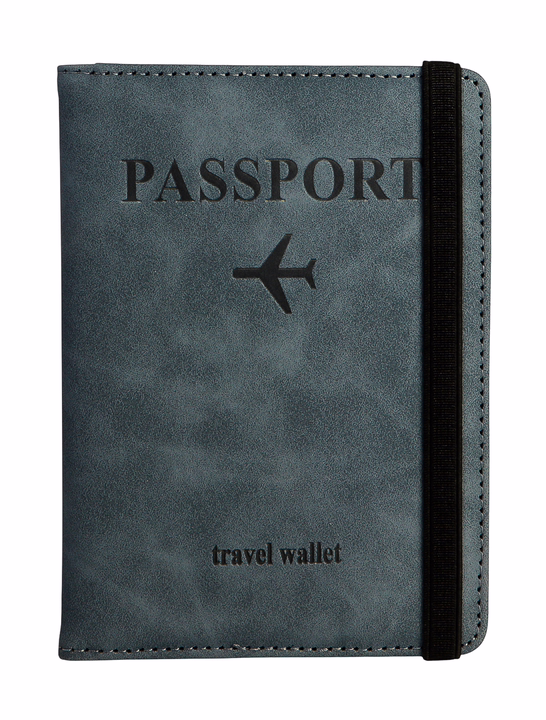 Модель выполнена из экокожи серого цвета c приятной на ощупь soft touch-поверхностью и украшена тиснением в виде надписи "Passport", "travel wallet" и силуэта самолета.