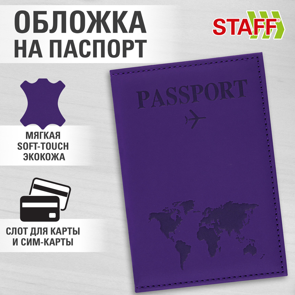 Модель выполнена из экокожи с эффектом soft-touch и украшена тиснением в виде надписи "Passport" – на обложку нанесено изображение самолета и карты мира. Имеет простроченные края и мягкую изолоновую вставку. На внутреннем развороте расположены два кармана из прозрачного пластика. Благодаря компактным размерам 98х141 мм документ в обложке удобно носить с собой.