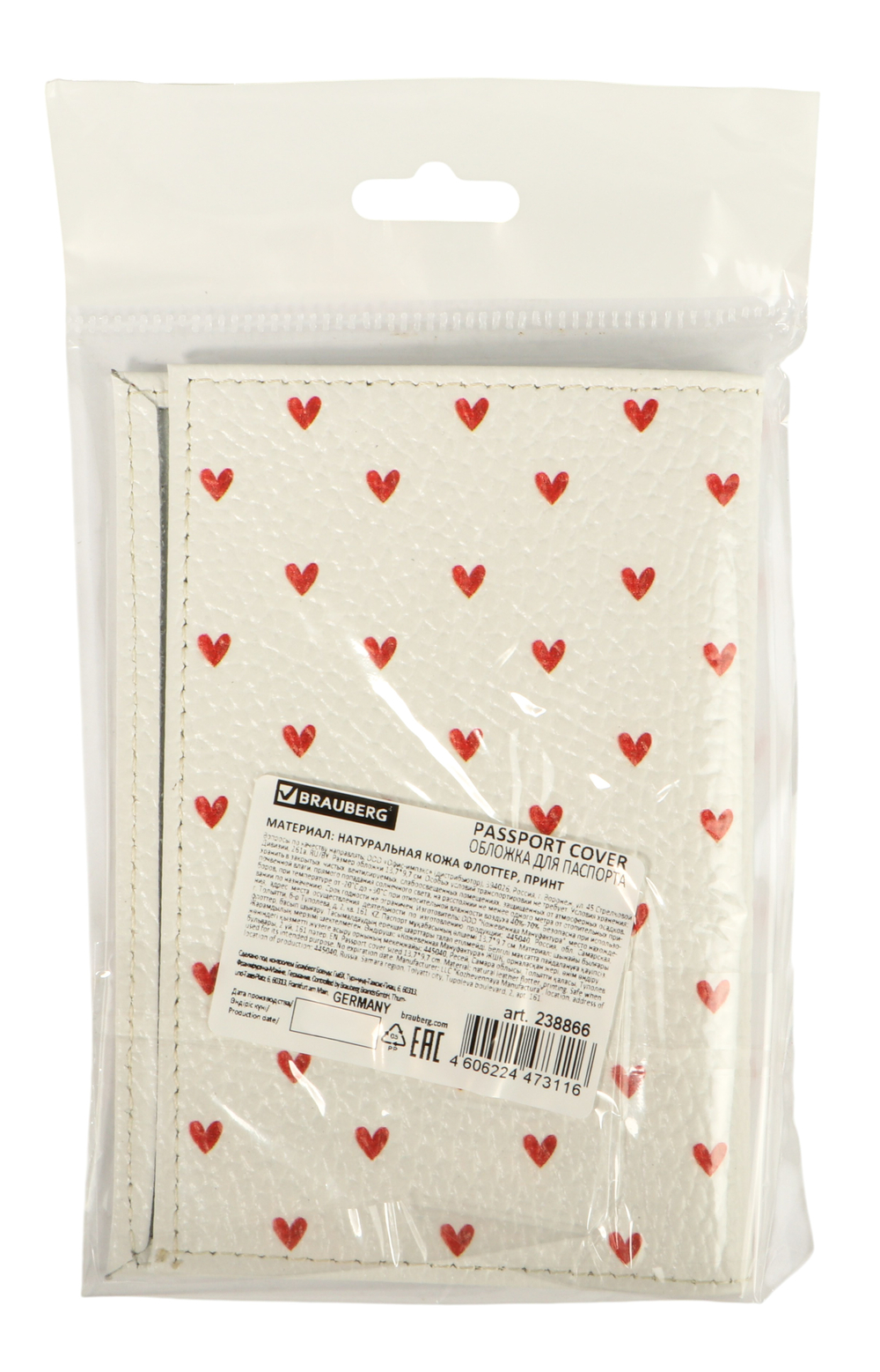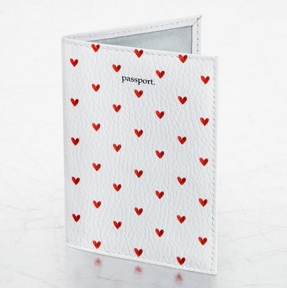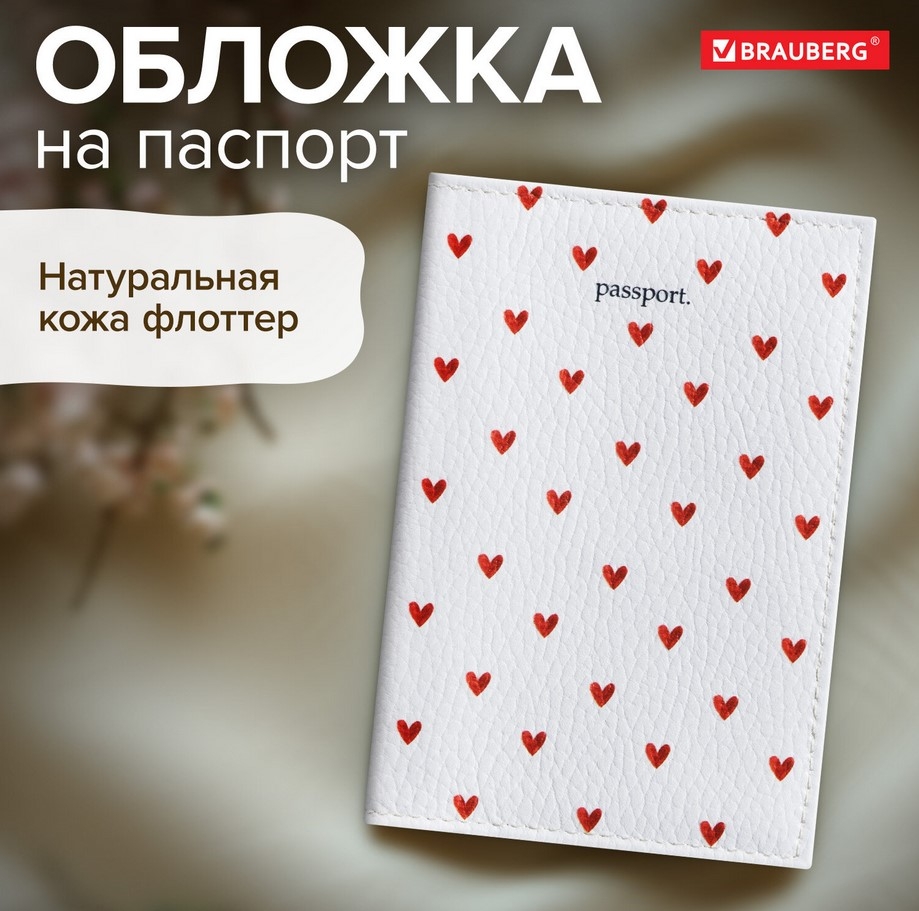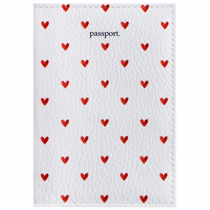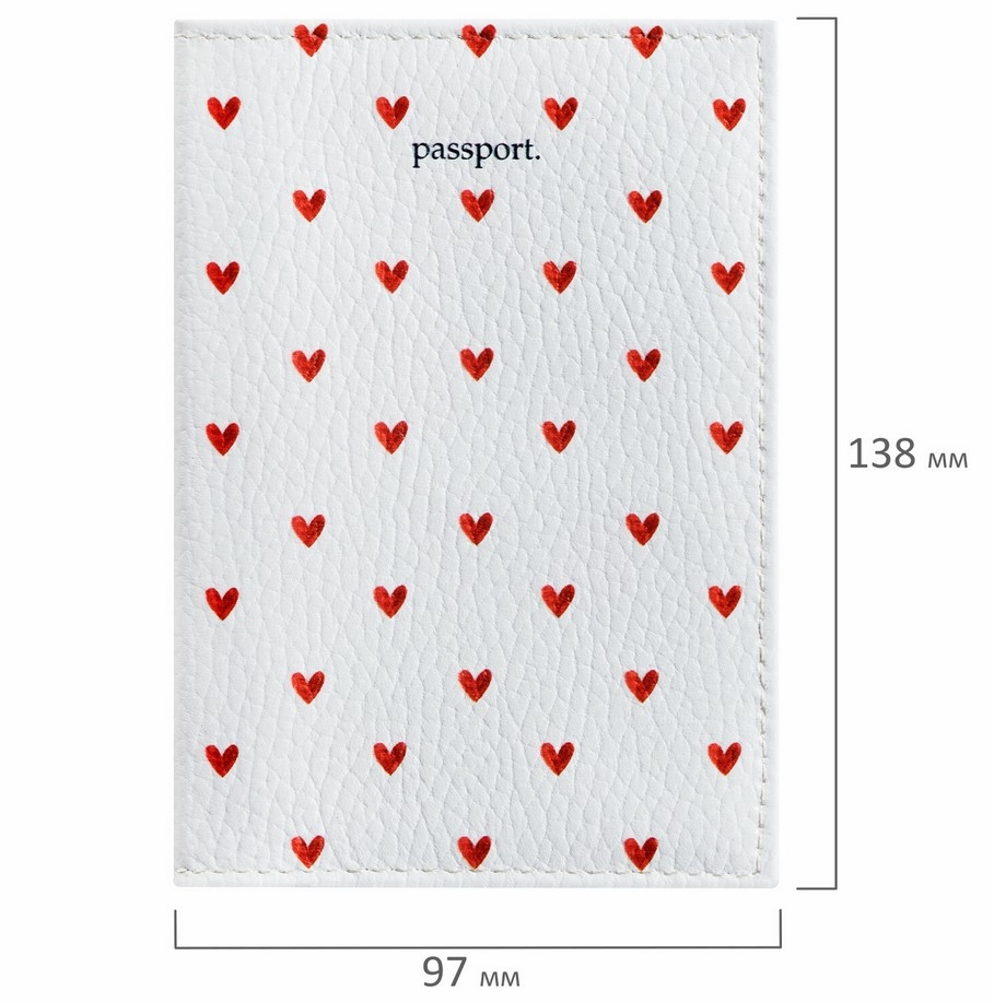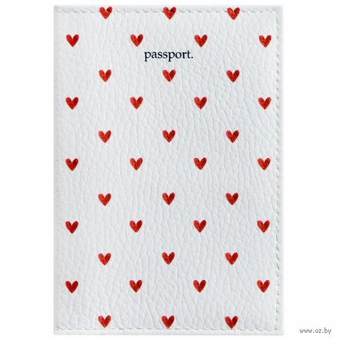Модель выполнена из натуральной кожи флоттер белого цвета с современным минималистичным принтом в виде сердец и надписью "passport", что подчеркнет стиль и изысканный вкус обладателя.