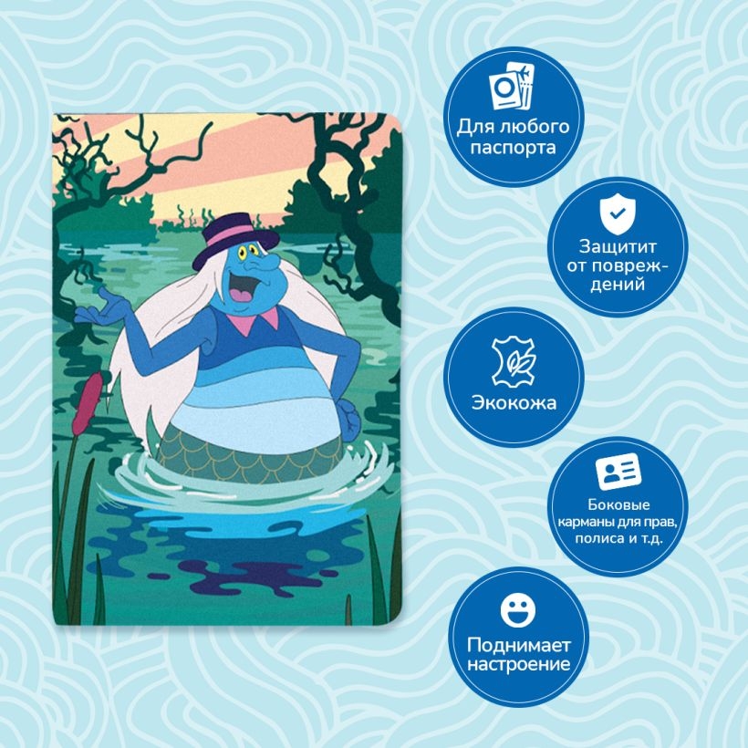Обложка на паспорт с Водяным из мультфильма "Летучий корабль". Идеально подойдет для тех, кому надоела жизнь-жестянка, надоело общество пиявок и лягушек и кому охота летать.