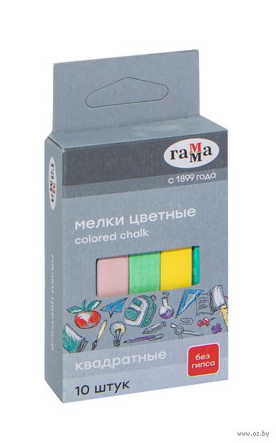 Набор из 10 квадратных цветных школьных мелков подходит для письма или рисования на школьной доске или любой шероховатой поверхности. Длина мелка – 8 см.