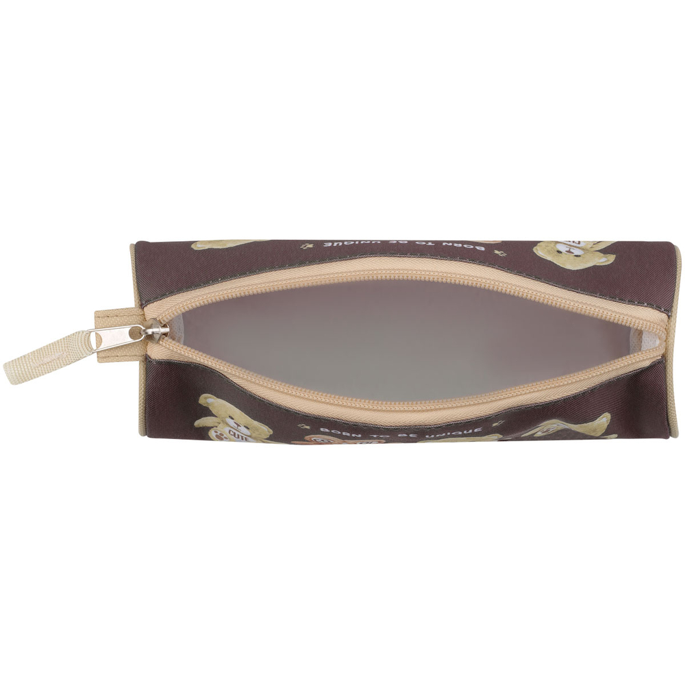 Коричневый пенал с бежевыми элементами выполнен в стильном дизайне и поместится в любую сумку, ранец или рюкзак.
