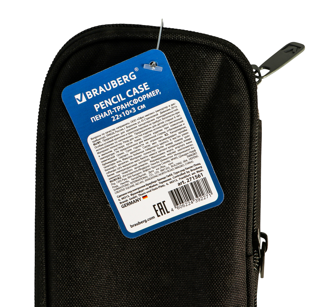 Пенал-трансформер прямоугольной формы, выполнен из прочного полиэстера высокой плотности. Вмещает 50 канцелярских принадлежностей стандартных размеров.