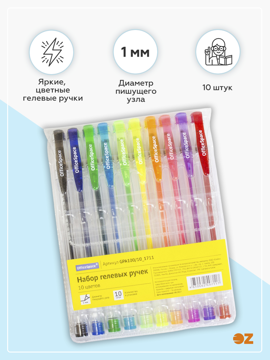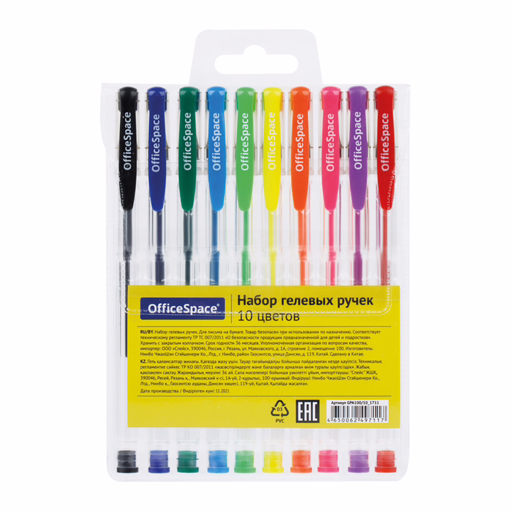 Набор ручек гелевых "Office Space" (10 цветов)