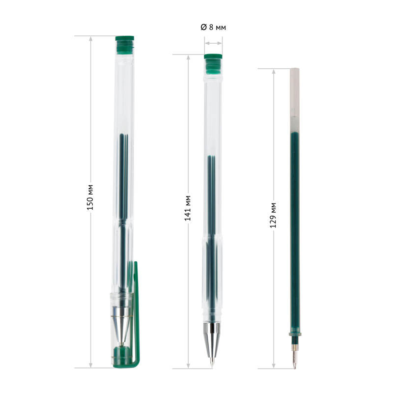 Ручки представлены в пластиковом прозрачном корпусе со вставкой за контролем расхода чернил. Цвет колпачков соответствует цвету чернил.