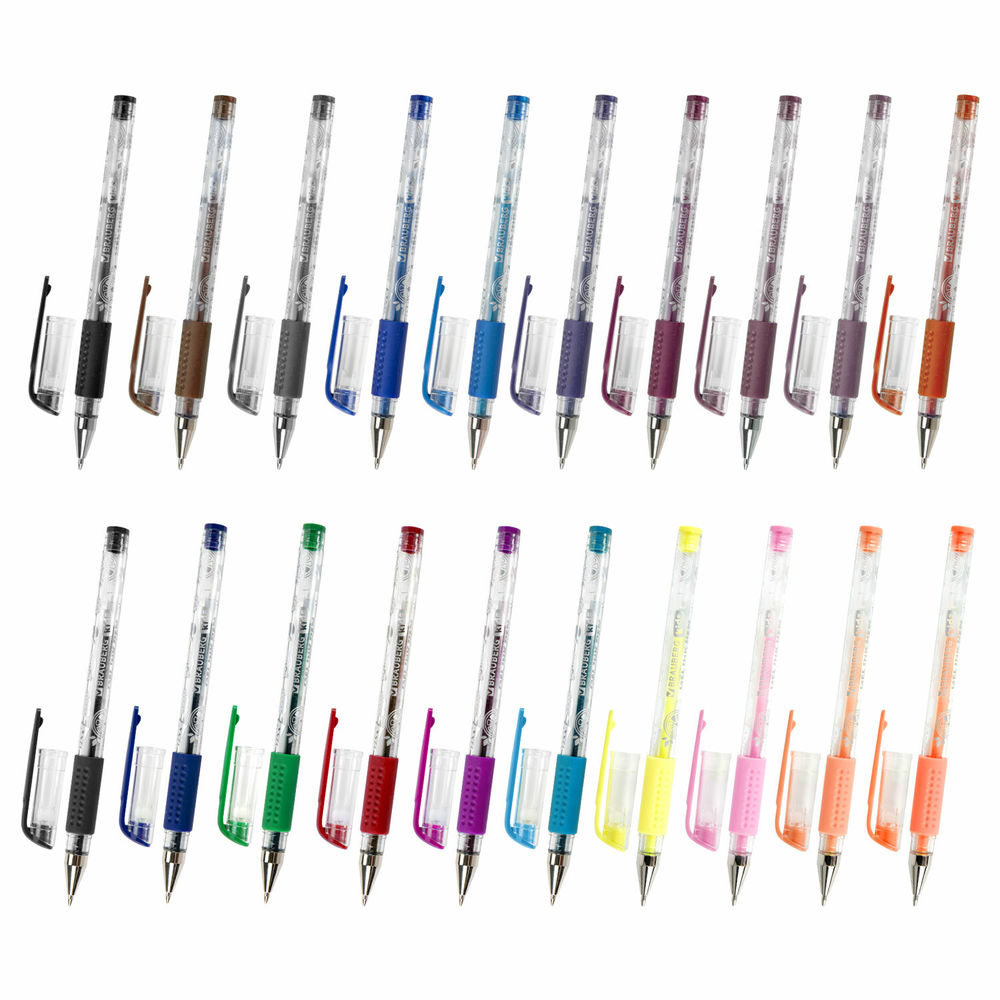 Набор включает 20 гелевых ручек: 5 ручек с классическими чернилами,10 с эффектом металлик, 5 пастельных.