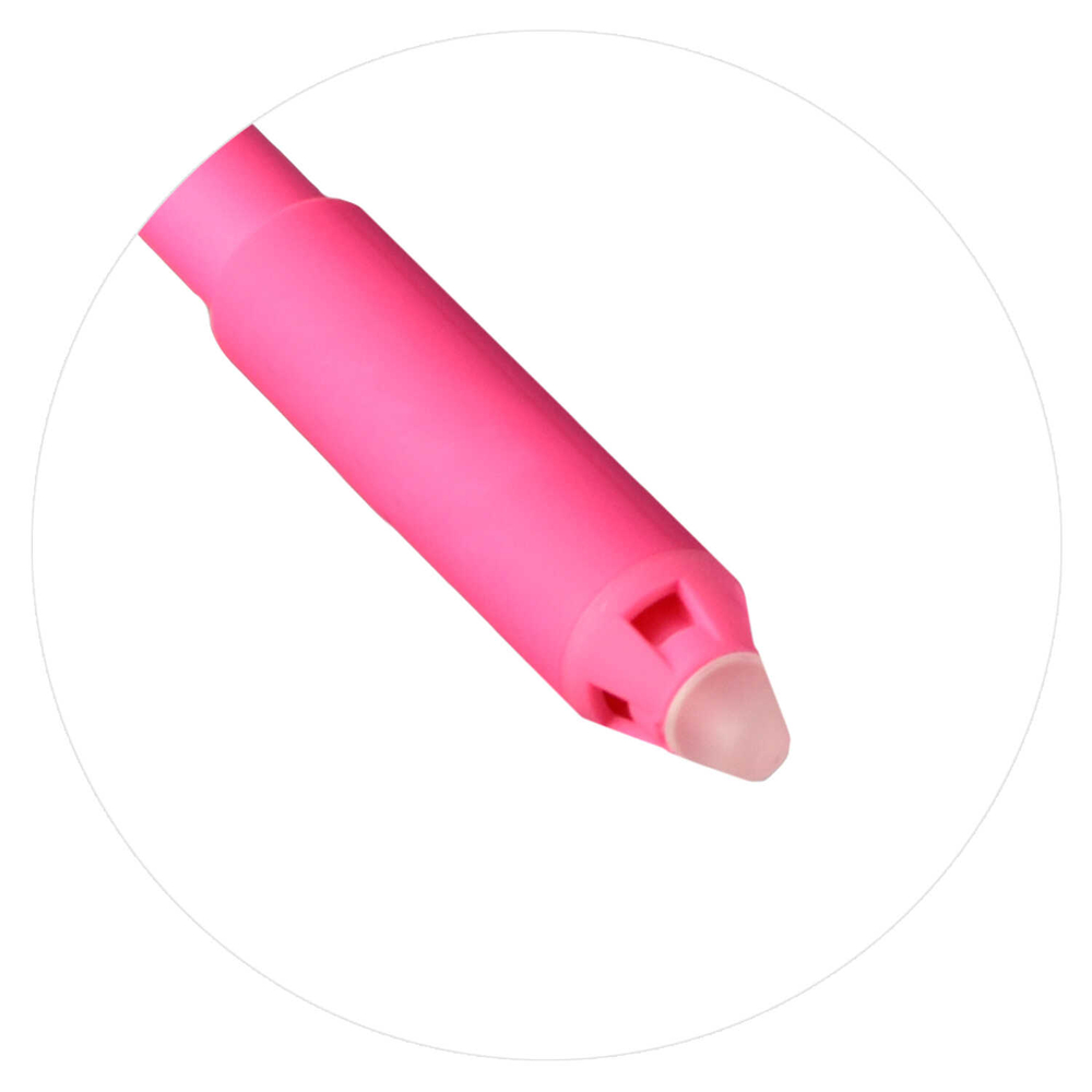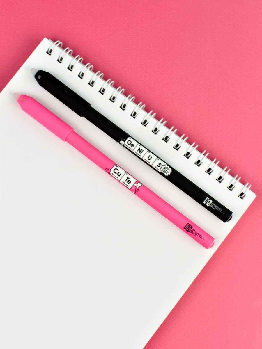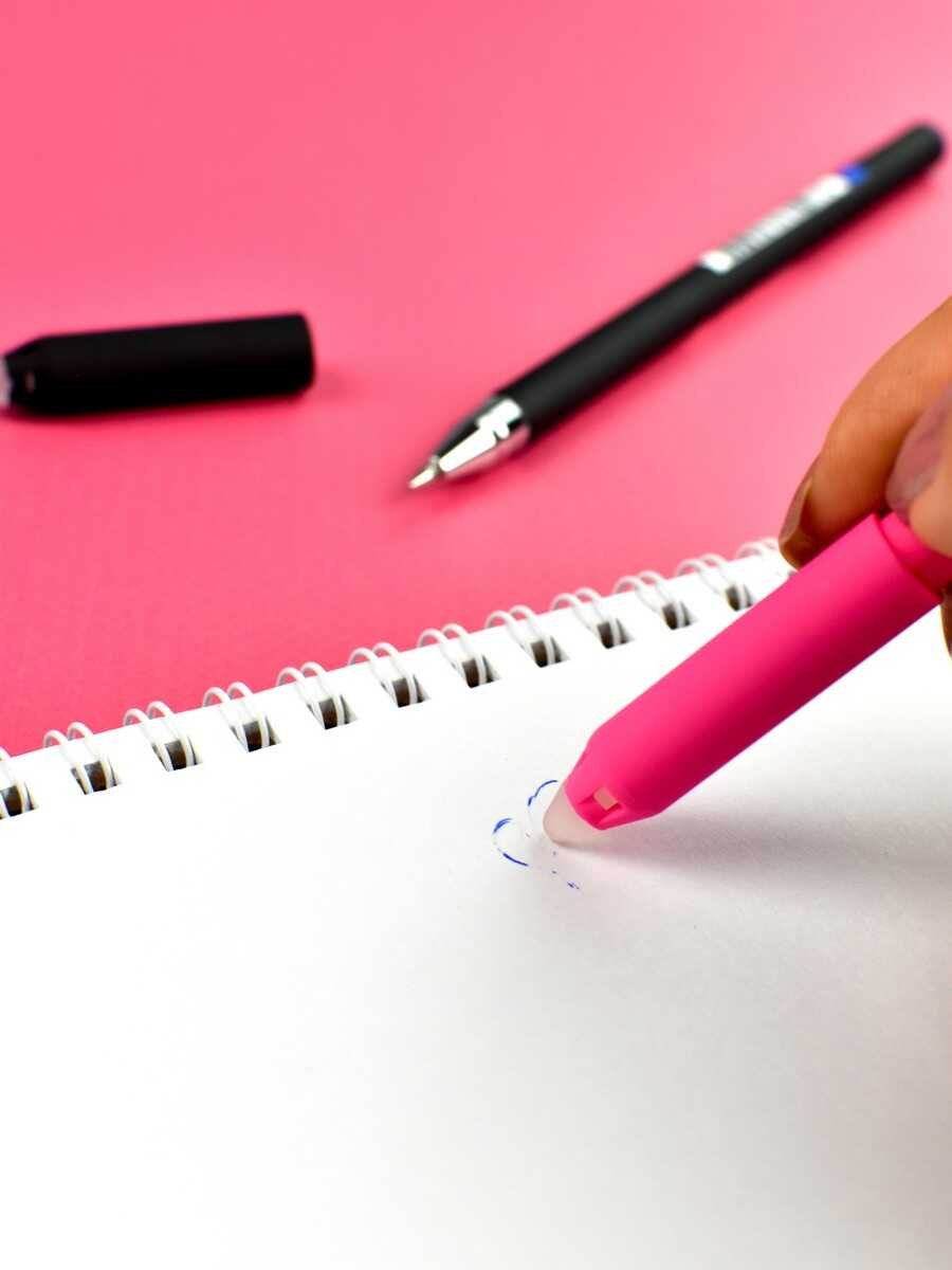 Ручка содержит специальные чернила, которые стираются при помощи прозрачного наконечника, встроенного в корпус.