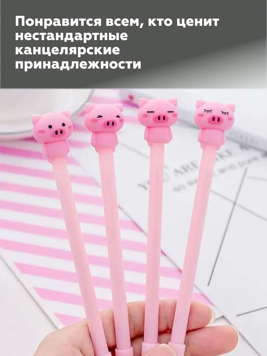 Нежная ручка с забавным дизайном в виде поросенка станет приятным спутником в учебе или работе.