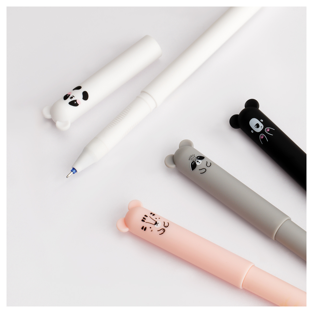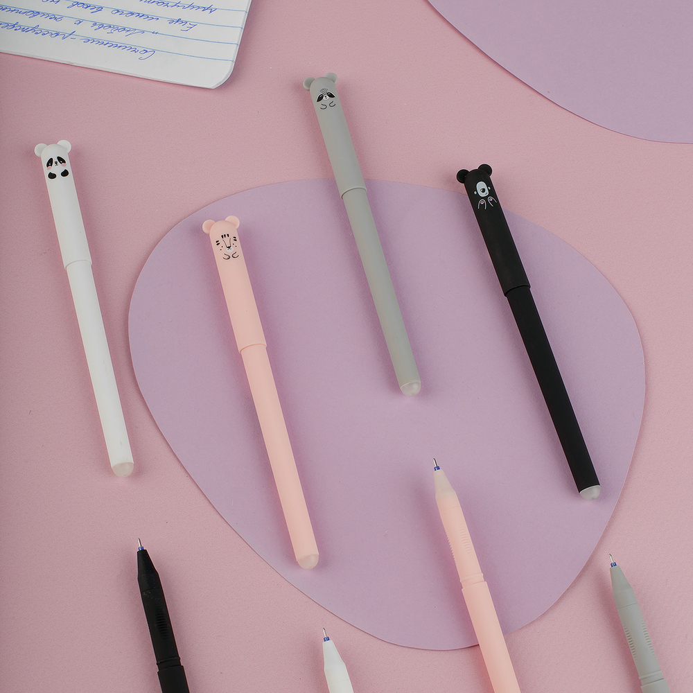 Милый дизайн корпуса представлен в четырёх цветах. Гелевые термочувствительные чернила ярко пишут на бумаге, а при воздействии высокой температуры, создаваемой трением, становятся невидимыми: достаточно потереть написанное ластиком на кончике ручки. Обесцвеченные чернила проявляются при низкой температуре.