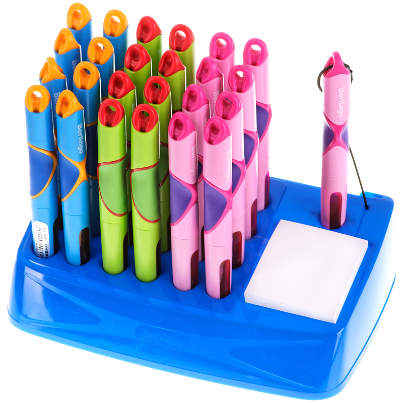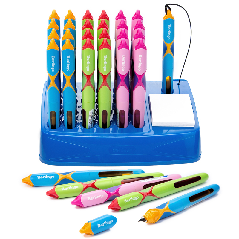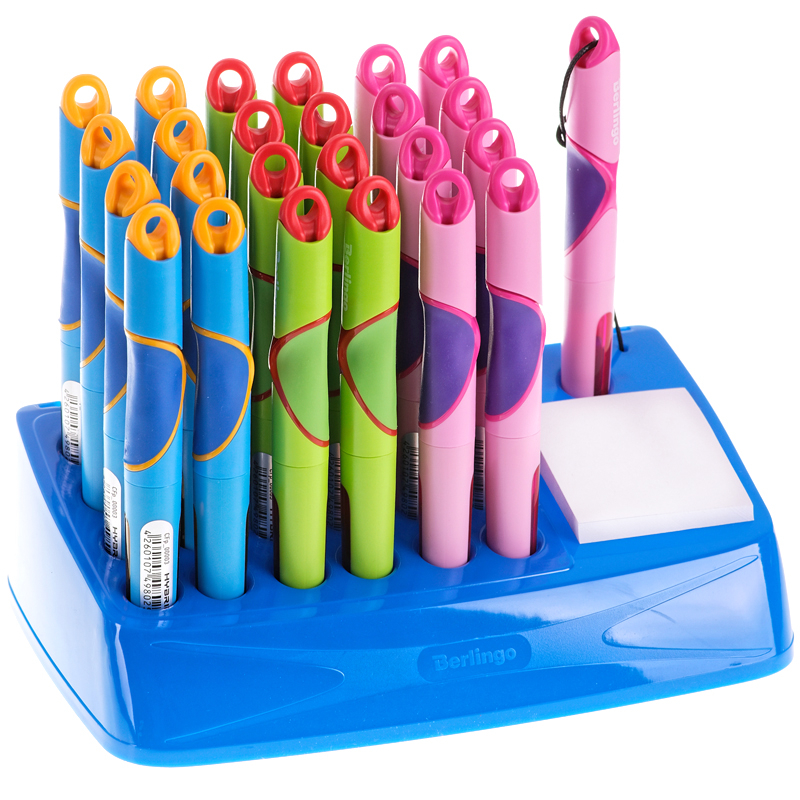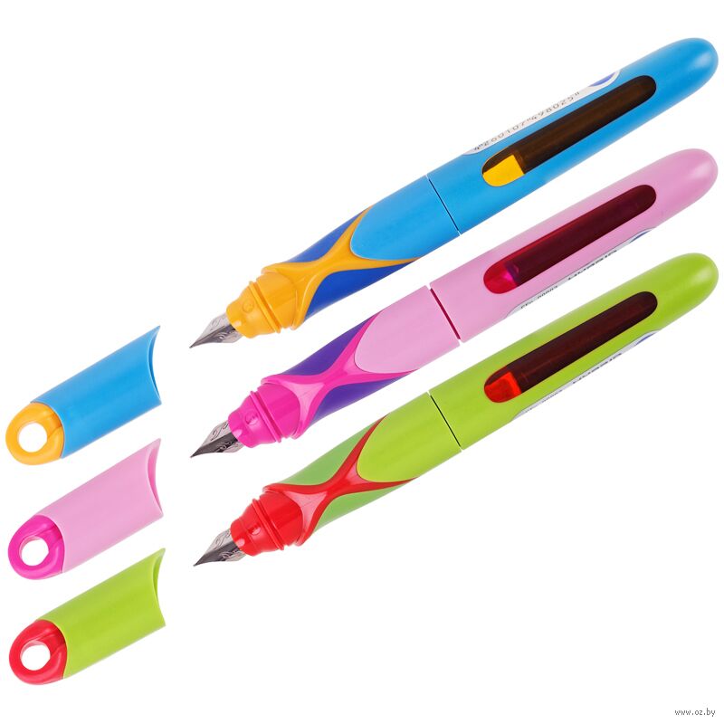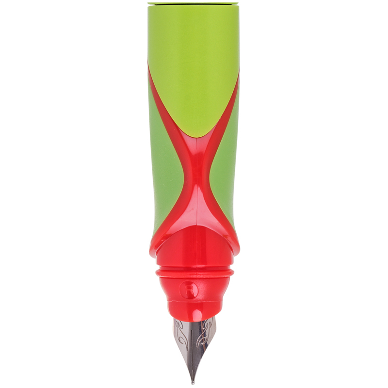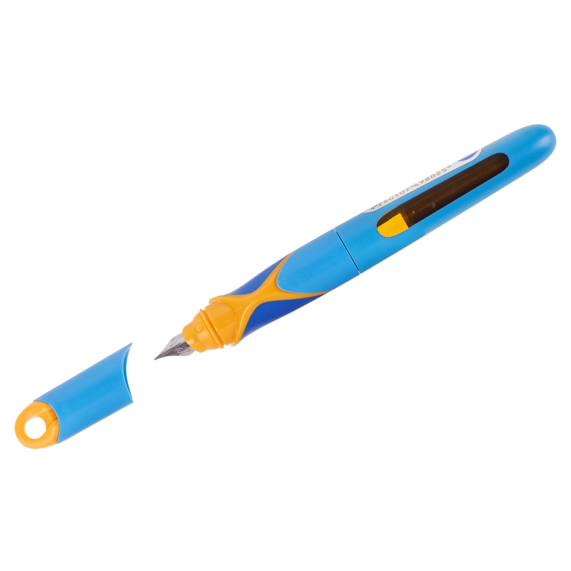 Яркая перьевая ручка в пластиковом корпусе. Эргономичный мягкий трёхгранный грип гарантирует комфортный захват и удобство использования ручки детьми.