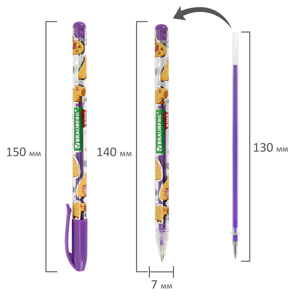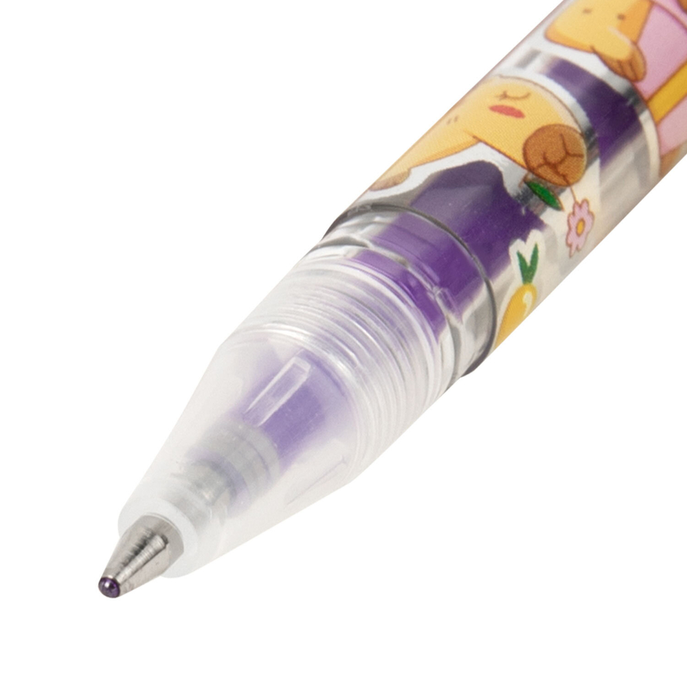 Круглый корпус ручек выполнен в интересном дизайне с милыми животными, которые поднимут настроение и вдохновят на новые идеи. Гелевые чернила ложатся на бумагу мягко и плавно – с ними ручка скользит по бумаге практически без нажима, позволяя заниматься творчеством на протяжении долгого времени без усталости. Диаметр стандартного наконечника составляет 1 мм, толщина линии письма – 0,7 мм.