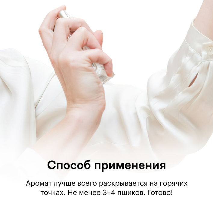 Моно-аромат не имеет классического деления на "верхние", "средние" и "базовые" ноты. Через 2 часа аромат будет раскрываться точно так же, как после первого "пшика". Поэтому ароматы бренда так легко выбирать и сочетать между собой!