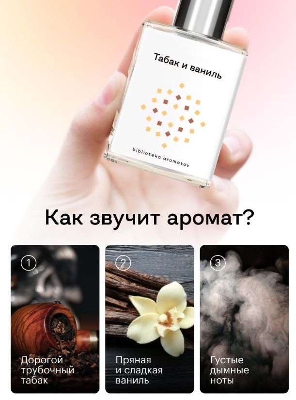 Когда мы вдыхаем этот аромат, то представляем 19 век и бал среди представителей высшего общества. Изысканные и утончённые наряды светских дам, безупречное чувство вкуса и ванильный шлейф. Кажется, он повсюду, но тянется от обнажённых женских ключиц и плеч. Лишь одна выделяется среди остальных. Гордо приосанившись, она отстранённо смотрит в окно и уверенно достаёт из портсигара пахитоску. Сочетание табака и ванили дурманит и разносится в лёгкой дымке насыщенным сладко-пряным ароматом. Не зря о таких девушках писали и Толстой, и Тургенев.