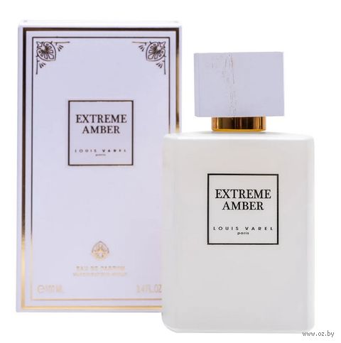 Extreme Amber – это новая формула, разработанная Луи Варелем, чтобы дать миру новый аромат, богатый восточными ингредиентами, который может подавить любое неприятное событие в вашей жизни. Красивый белый цвет с золотым узором – отражение богатства и чистоты. Extreme Amber – это красивая смесь амбры и ванили, которая раскрывается на удивительном фоне пачули и бобов Тонка.