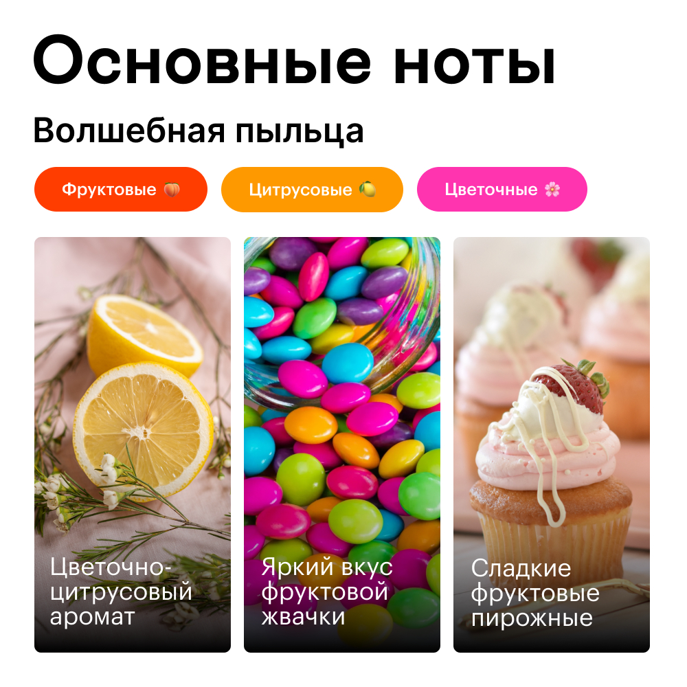 Когда мы маленькими смотрели диснеевские мультфильмы, нас всегда завораживало появление феи в облаке волшебной пыльцы. Теперь можно попробовать её аромат и сравнить его с нашими детскими фантазиями. Одна капля на запястье – и вас будто поцеловала фея!