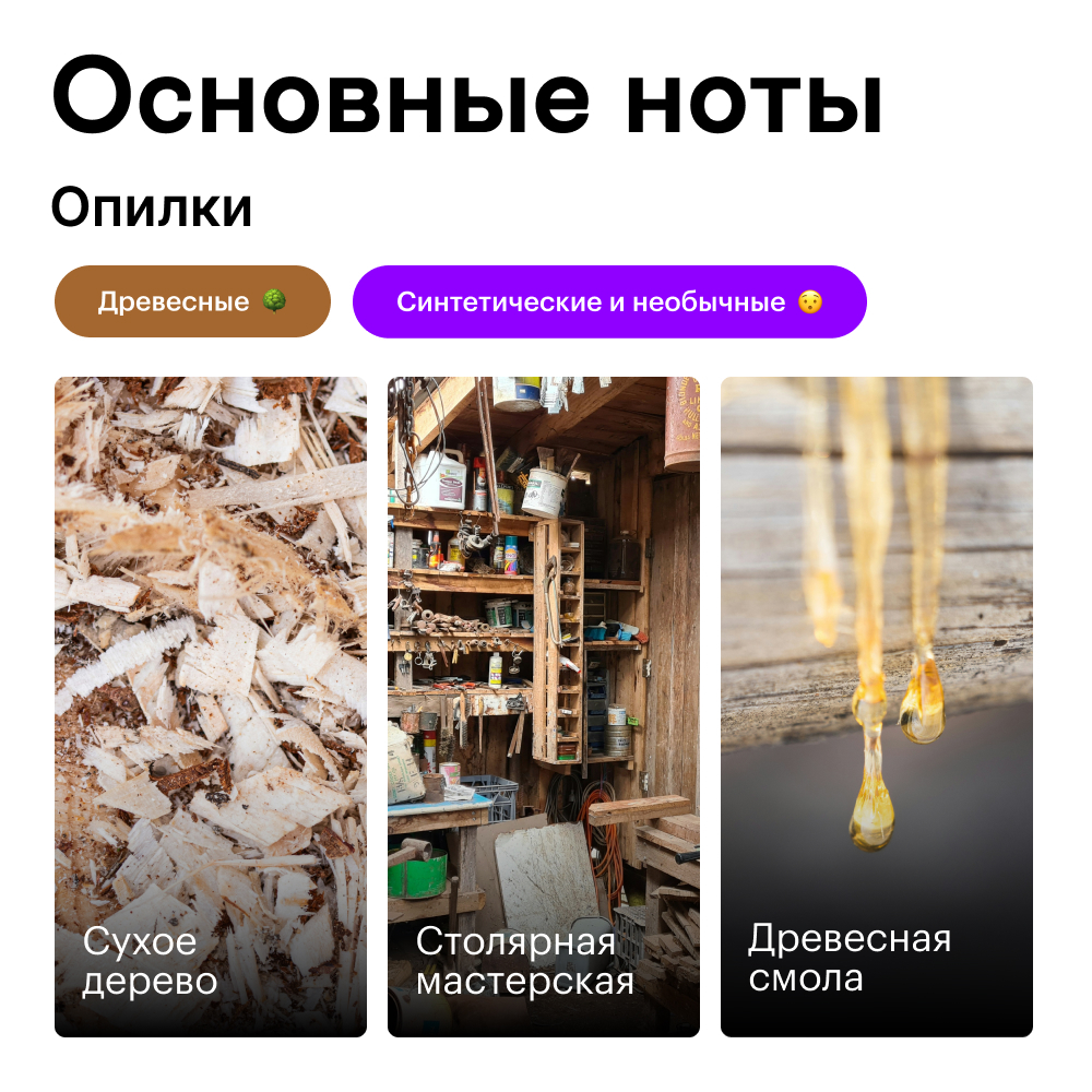 Очень серьёзный и яркий аромат. Представьте, что зашли в столярную мастерскую, где кипит работа. Пилят, шумят, творят – тут не до шуток.