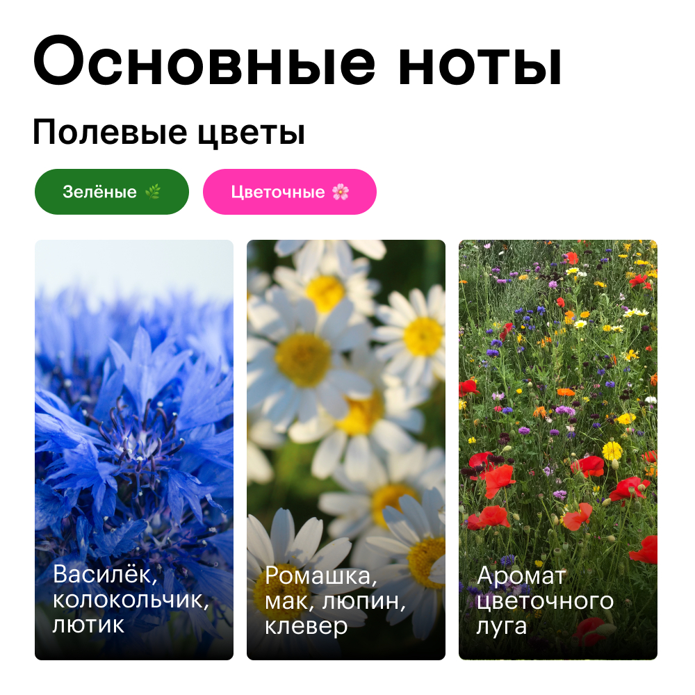 Василек, герань, колокольчик, клевер, мак, лютик, ромашка, люпин и еще много свежих полевых цветов, аромат которых парфюмеры Demeter объединили в одном флаконе. Цветочный букет от Demeter подарит гармонию, спокойствие и умиротворение, перенесет вас на природу и спасет от ежедневной городской суеты.