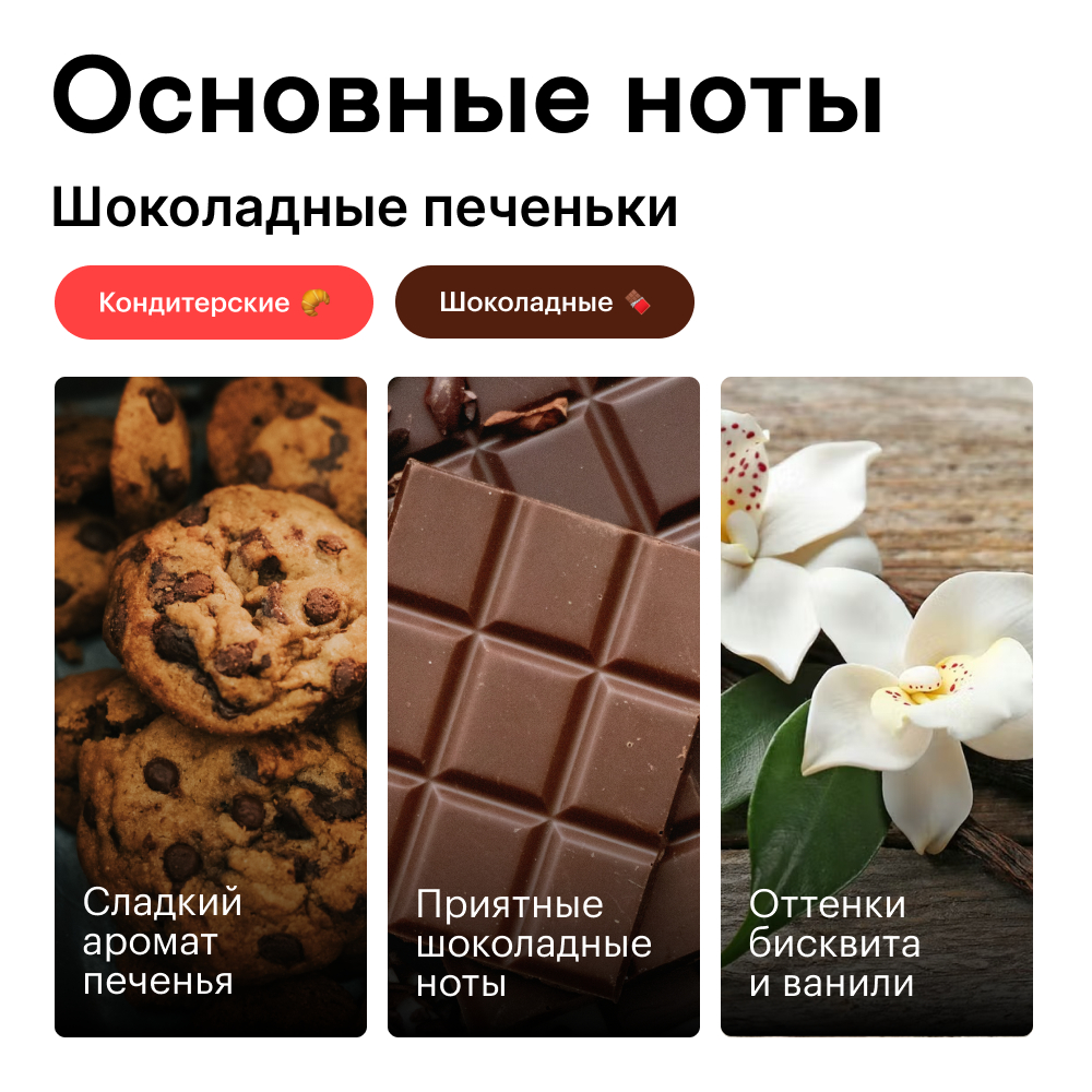Как же здорово пахнет только что открытая пачка шоколадного печенья! Но в наших духах мы сохранили не только аромат шоколадного печенья, но ещё и все ваши воспоминания, связанные с шоколадом, сладостями и детством.