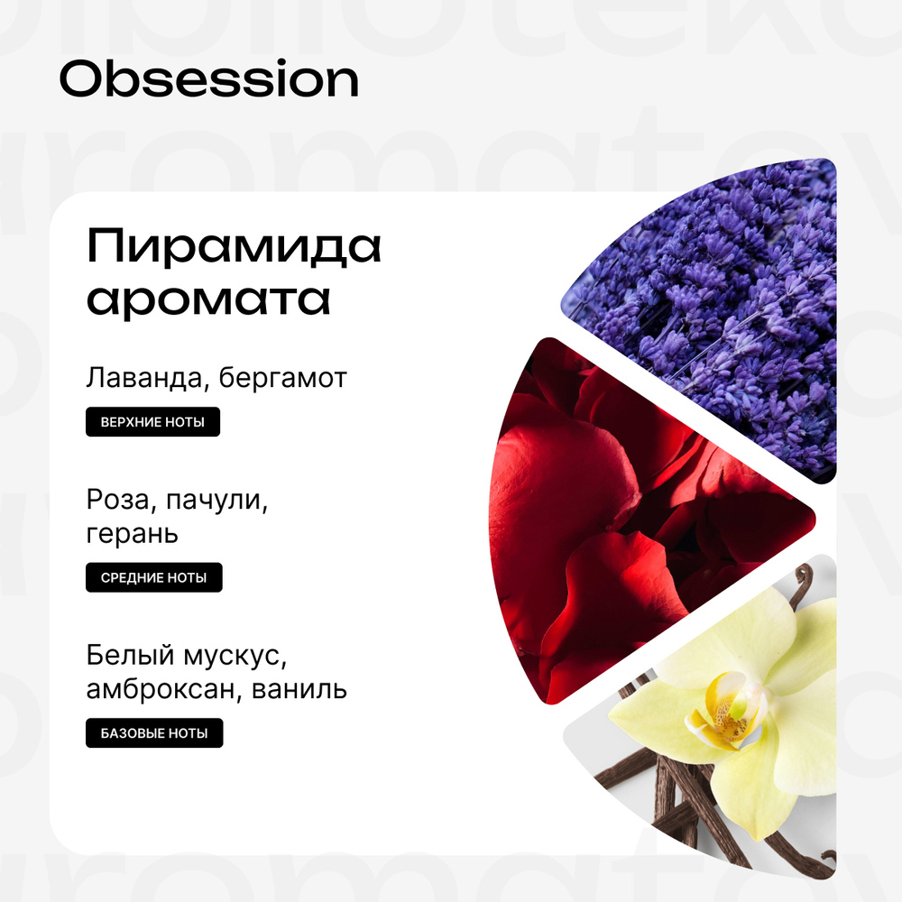 Властный аромат женщины, чьё обаяние и харизма выкручены на 1000 вольт. Можно ощущать тепло её кожи, вдыхать аромат её волос и грезить о взаимности. Но вы никогда не получите власть над ней. Она всегда будет на шаг впереди. Искушающая композиция: лаванда, мускус, ваниль, пачули.