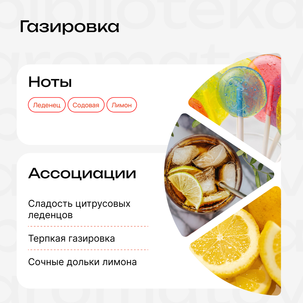 Пш-ш-ш! Слышите? Это фейерверком открывается новый аромат. Теперь можно наслаждаться знакомым с детства напитком и не переживать о вредности и калорийности. Аромат "Газировка" очарует невидимыми сладкими пузырьками и оставит лёгкий шлейф.