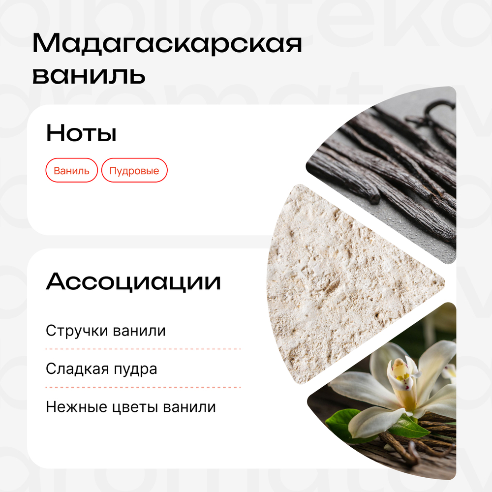 Мадагаскарская ваниль – золото в парфюмерном мире. Плотные, густые, сладковатые ноты дарят владельцу уверенность, и очаровывают всех вокруг. Успех ванили легко объяснить. Её аромат отдалённо похож на запах молодой кожи с лёгким сладким мотивом, будто вы только из душа. Поэтому тандем натурального аромата с экзотическими нотами просто покоряет харизмой.