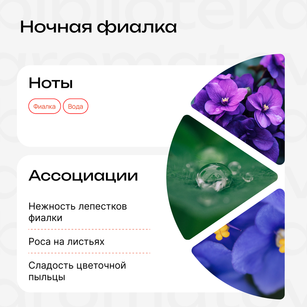 С этим ароматом о вас заговорят все, ведь люди будут думать, занимались вы весь день садоводством или только что искупались в чане с цветами. "Ночная фиалка" – не просто одеколон, это искушение. Он пленяет чувства своим манящим запахом нежных лепестков, покрытых жемчугом росы, под покровом звёздной ночи. "Ночная фиалка" – аромат, который требует внимания. И без внимания он не останется.