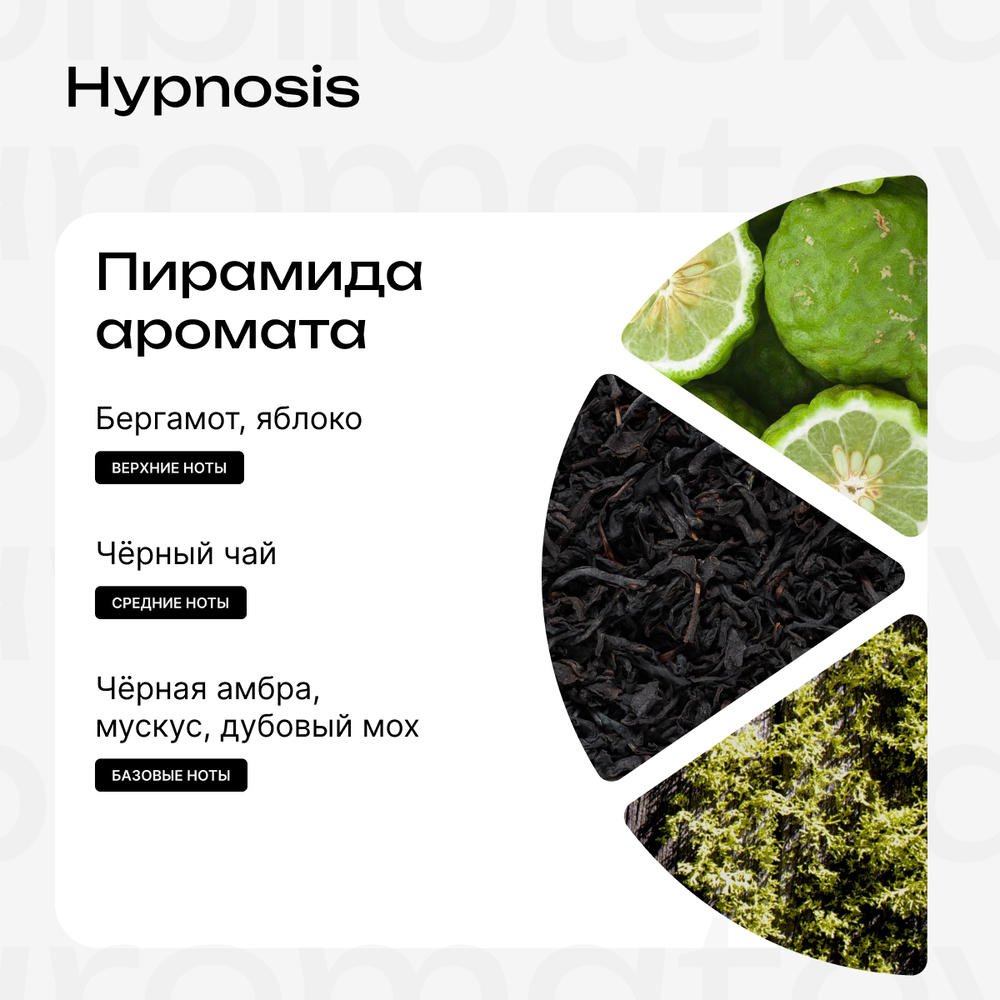 "Hypnosis" – нежный аромат, будто утреннее прикосновение любимого человека. Привычное и всякий раз новое, уютное и в тоже время будоражащее.