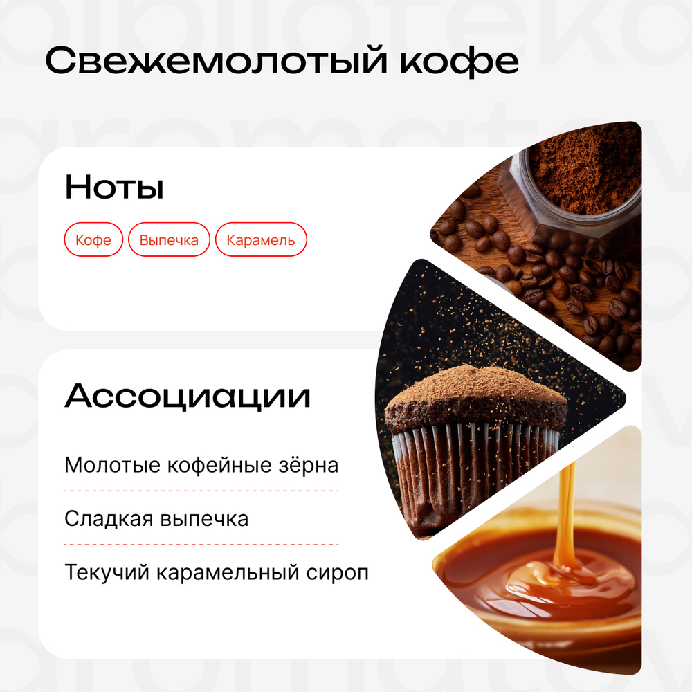 Представьте аромат, когда вы открываете кофемолку, которая только что хорошо поработала. Она немного нагрелась, поэтому терпкие ноты кофе звучат так ярко, что пульс уже начинает учащаться. Производители поместили запах свежемолотых зёрен в маленький флакончик. Пусть бодрящий терпкий аромат всегда будет с вами!