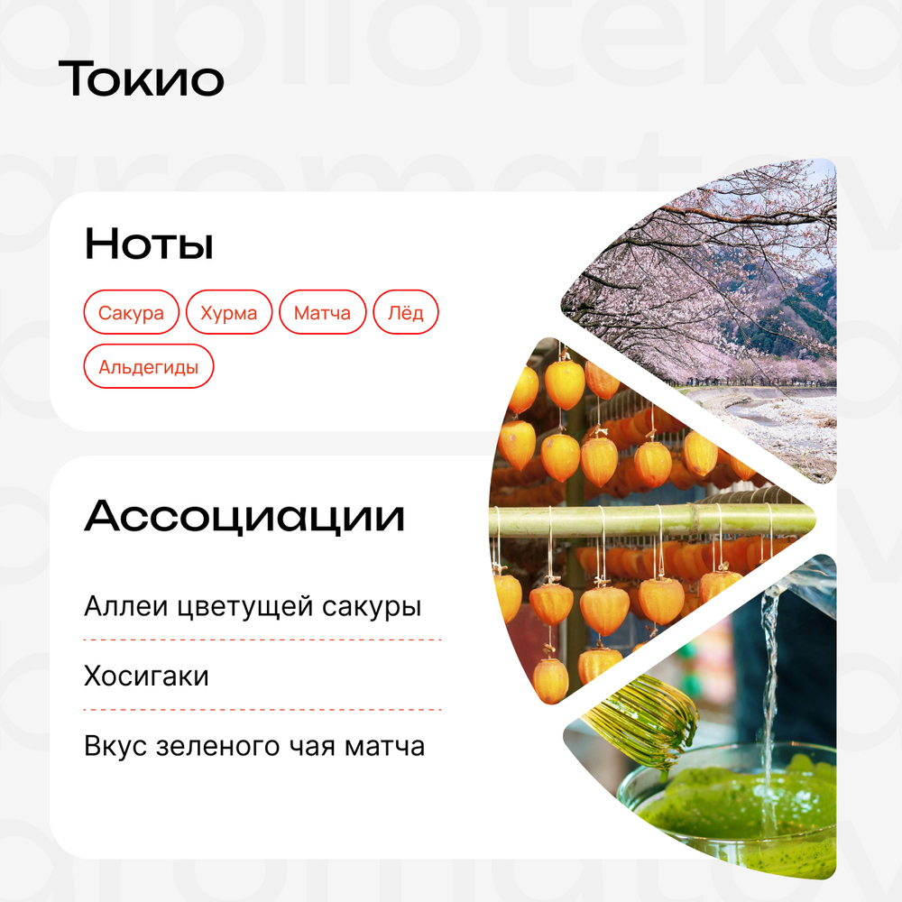 Один день в Токио? Легко, открывайте крышку флакона – отправляемся прямо сейчас. Потеряв счёт времени, позволим улицам закружить нас в освежающем аромате чистоты и сакуры, которая здесь может цвести даже зимой. После полудня чей-то проголодавшийся нос уловит запах хурмы, которая сушится прямо перед входом в ближайшую лавку. К слову, такой хурме регулярно и заботливо делают массаж, чтобы хосигаки получилось слаще мёда.